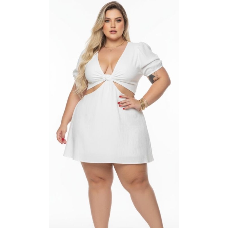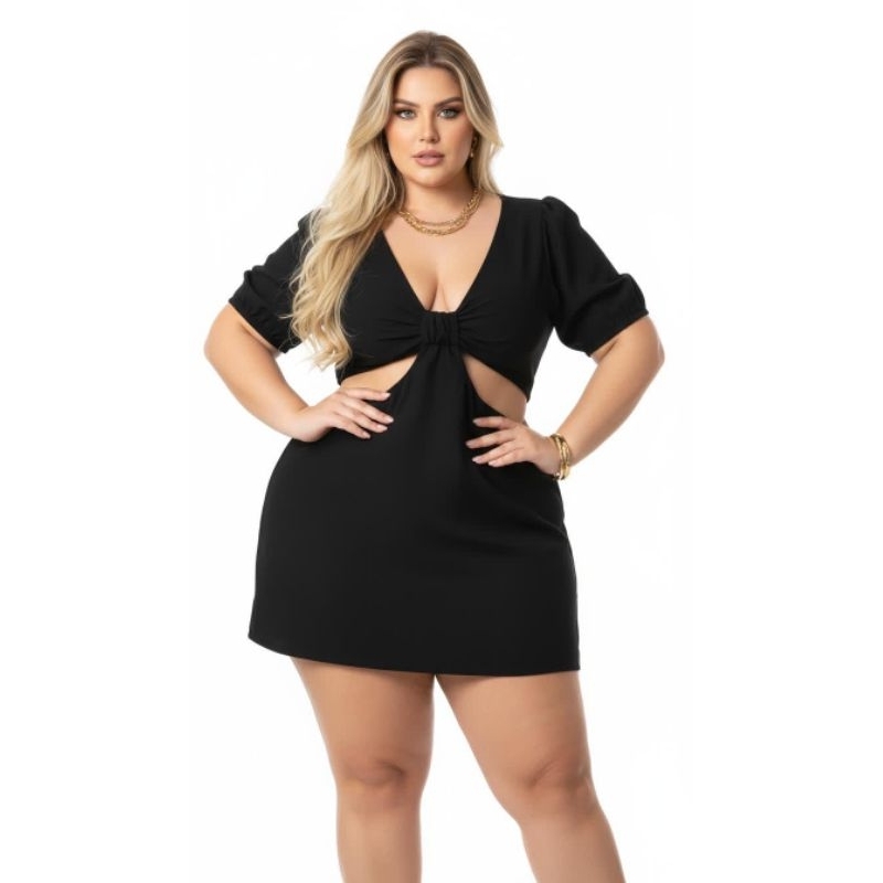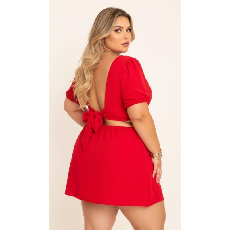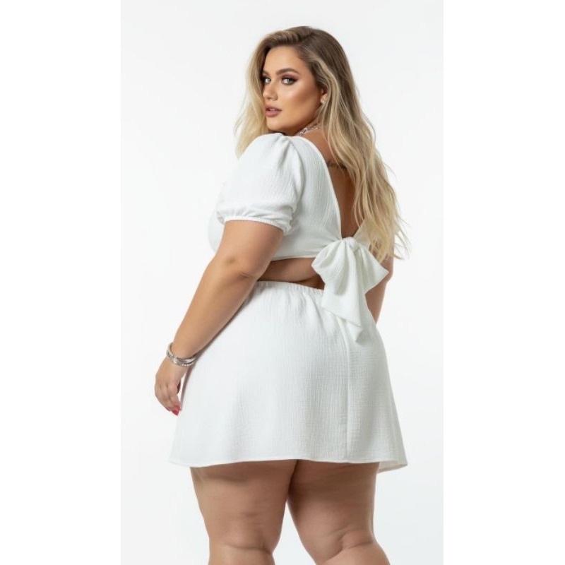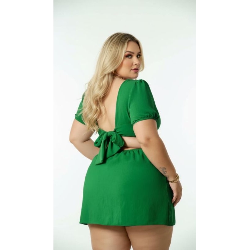Macaquinho Feminino Plus Size Curto Short Saia Estampado Liso Manga Princesa Confortável Tamanhos Grandes ( 38 AO 62)
