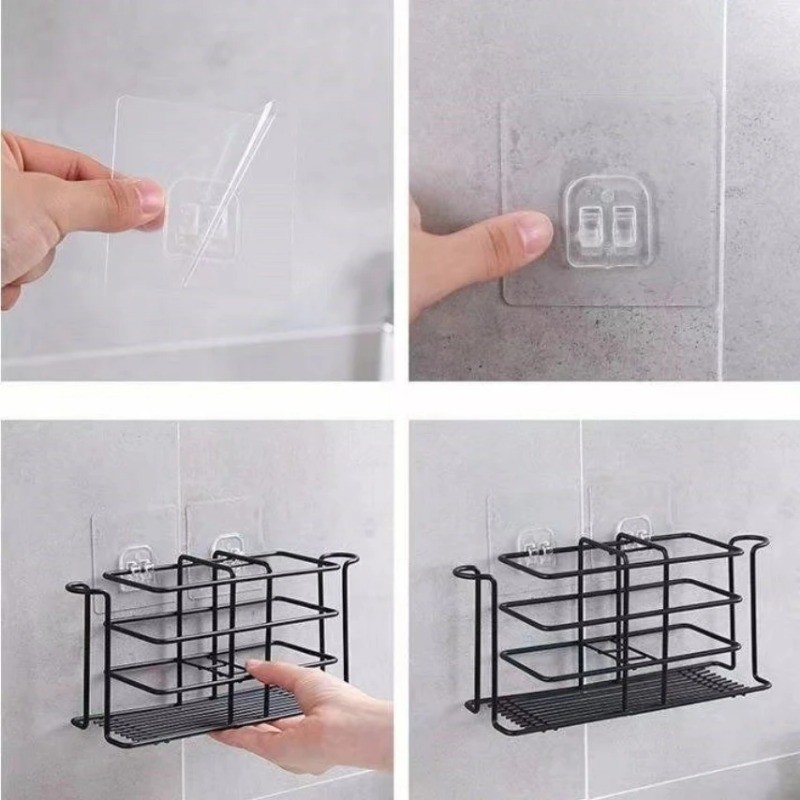 Gancho De Parede Transparente Não Marcante/Auto-Adesivo De Duplo Suporte