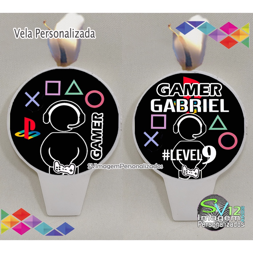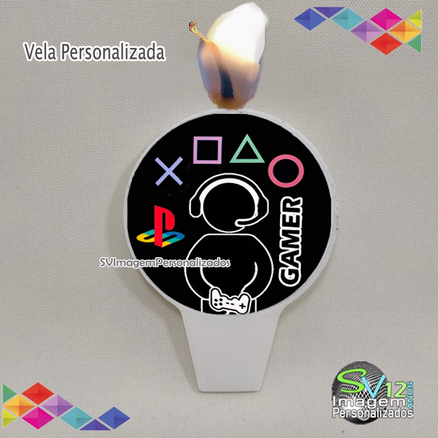 Festa Game Playstation Vela de aniversário para bolo Personalizada
