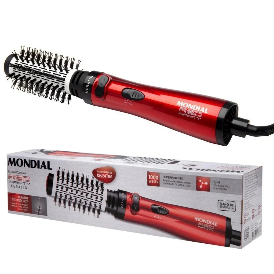 Escova Rotativa Secadora Giratoria Mondial Er-11-kr Modeladora 1000W Anti-Frizz 1000W Penteia Ar Frio Quente