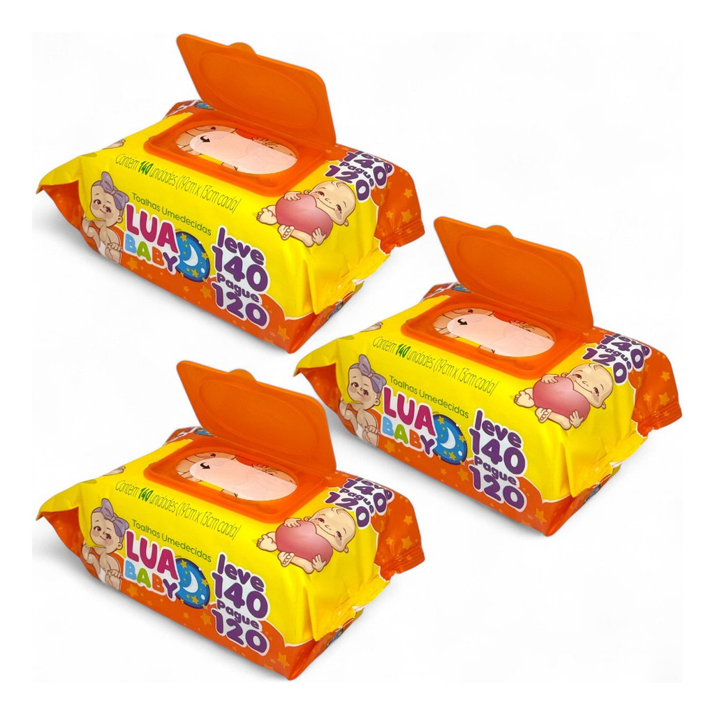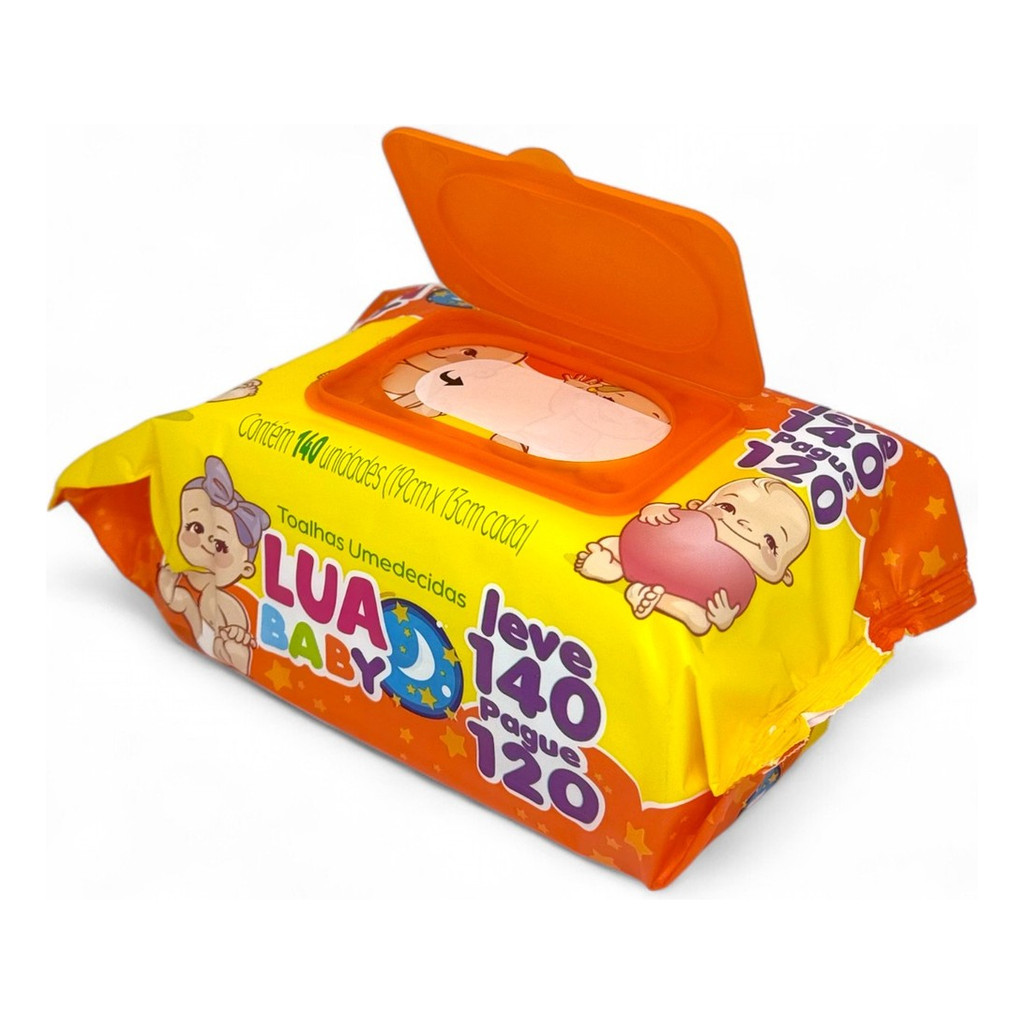 Kit 6 pacotes Lenço Umedecido Premium 840 Lencinhos Lua Baby Toalha Mimo Presente Bebe e Adulto