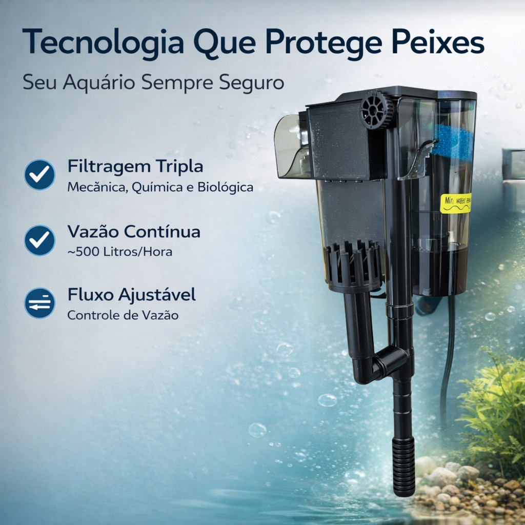 Filtro Aquario 500lh Externo Hang-on com Regulagem de vazão Aquatank HF-500 Original