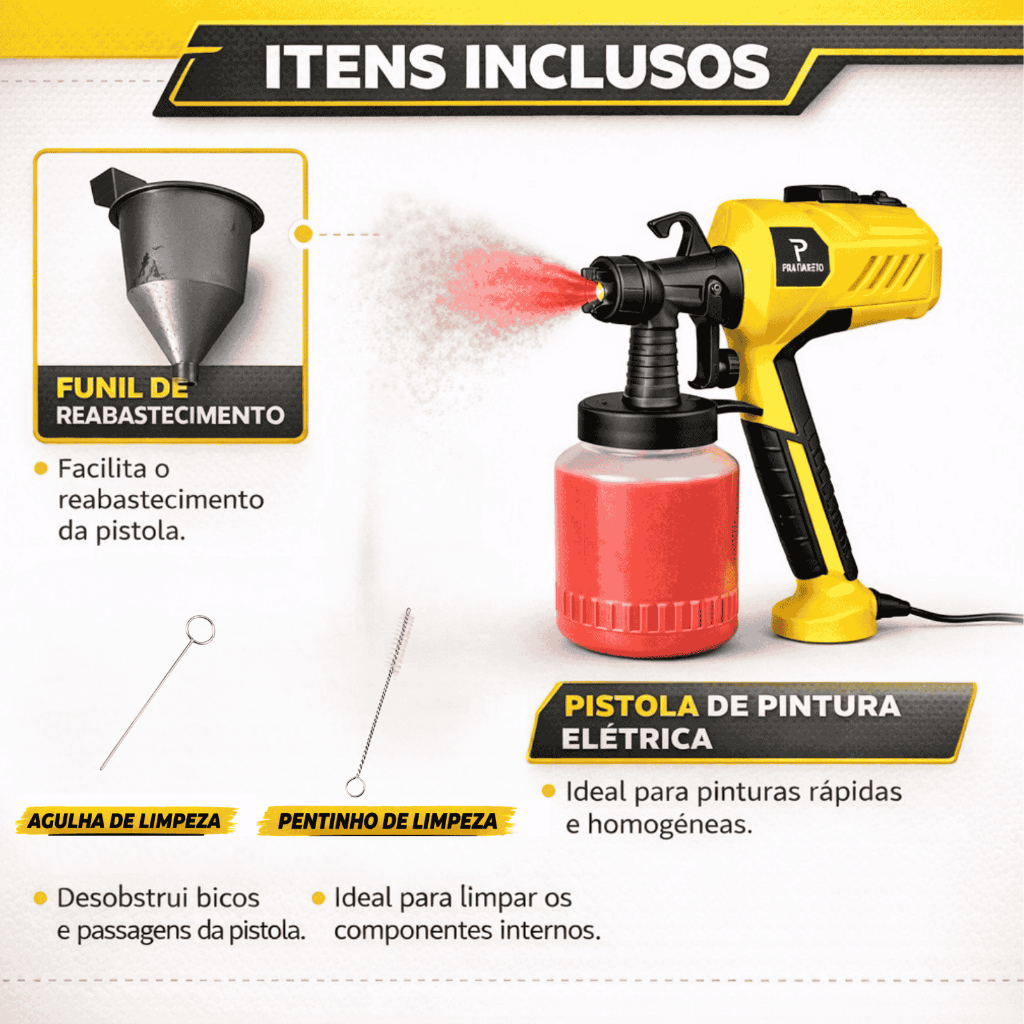 Pistola Elétrica Para Pintura Pulverizador de Tinta com Bico de Metal e Compressor 450w
