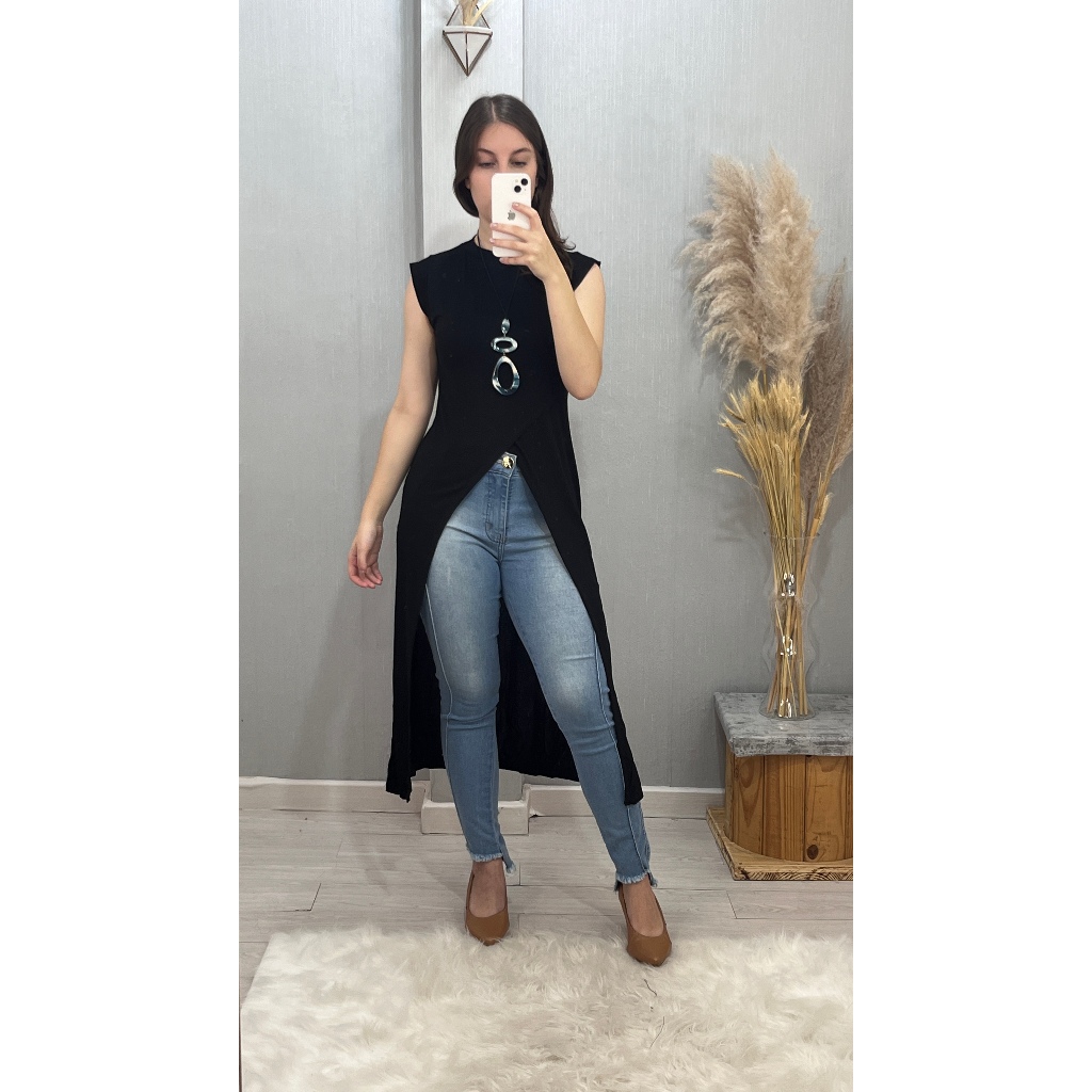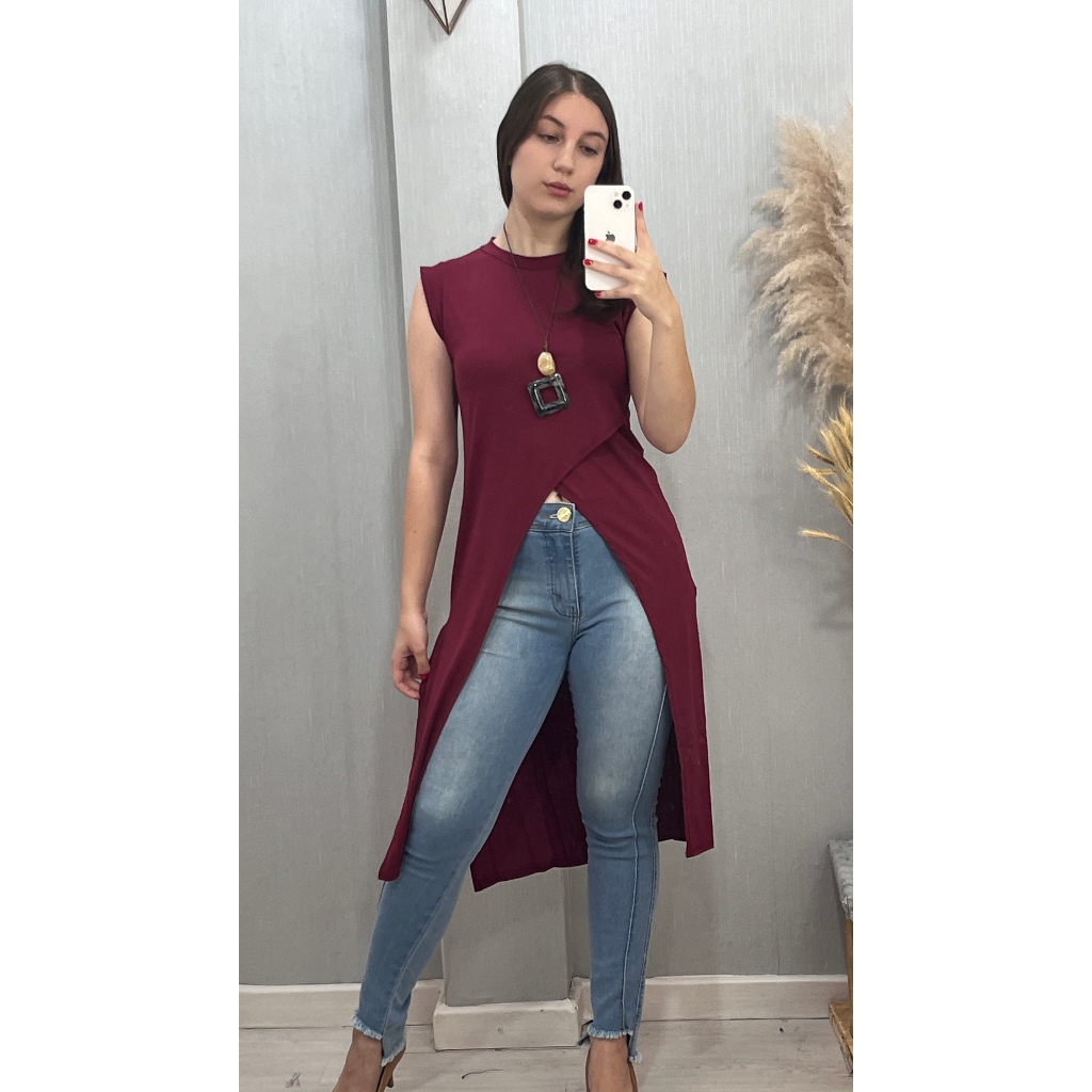 Blusa Maxi Regata com Fendas Laterais
