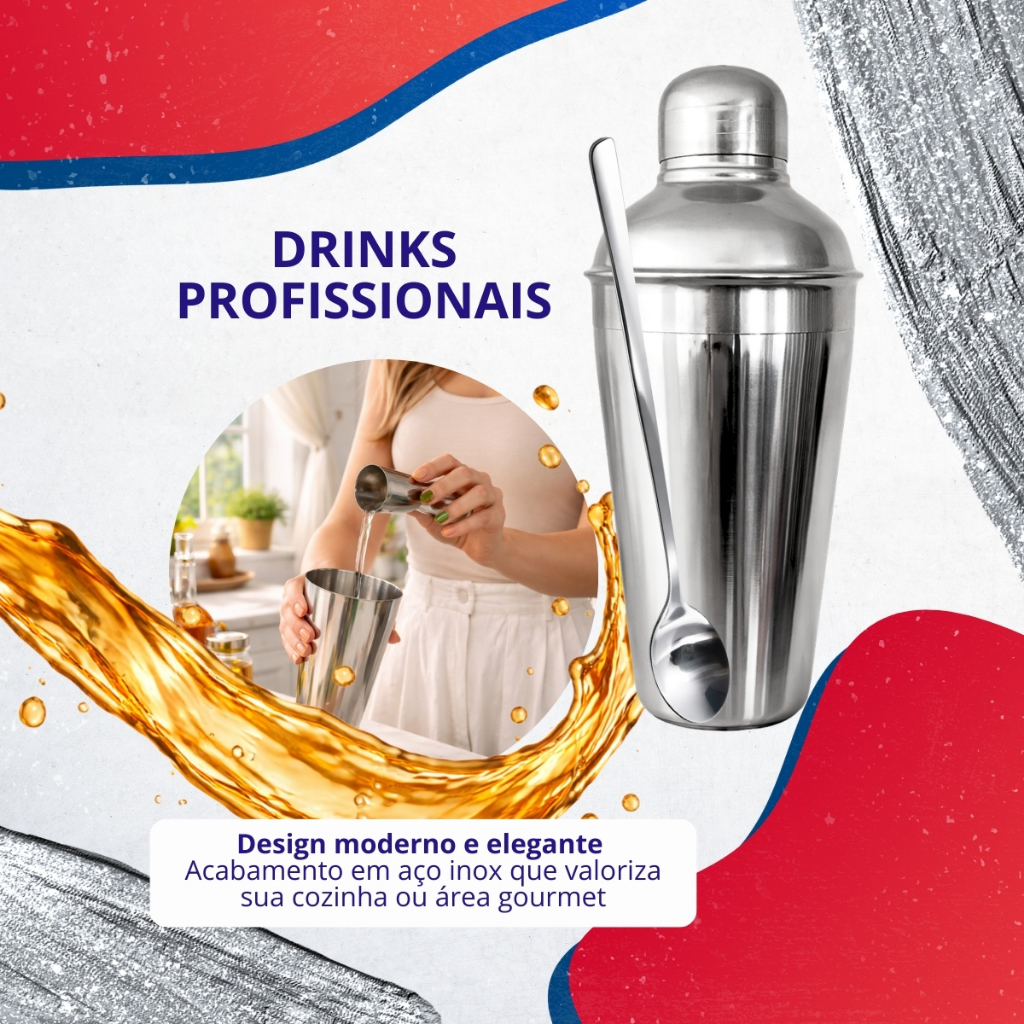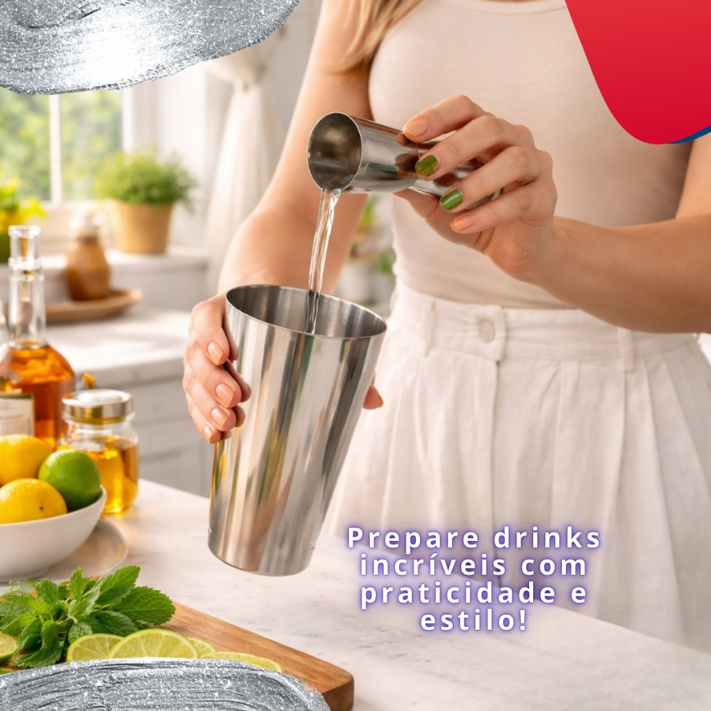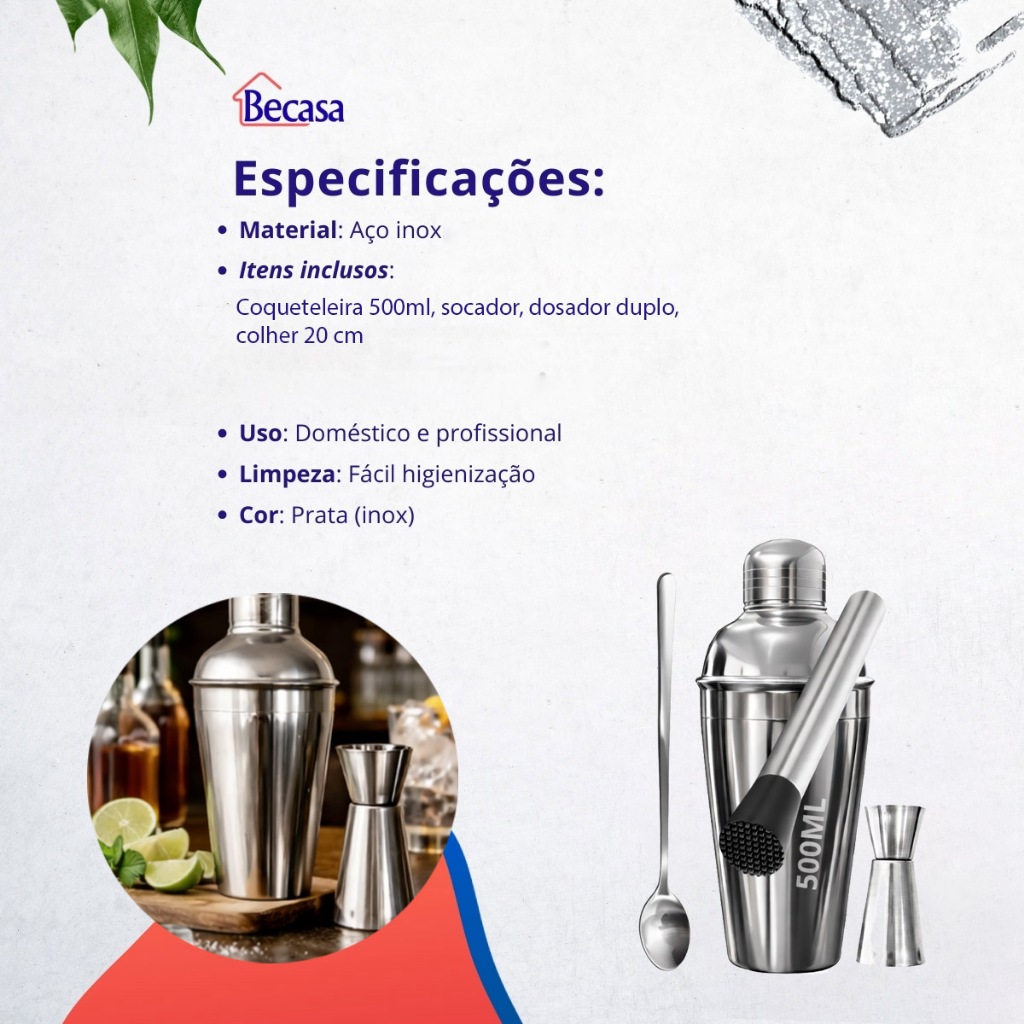 Kit Caipirinha Bartender Inox Coqueteleira 4 peças 500ml - Socador - Dosador Drinks Colher Premium