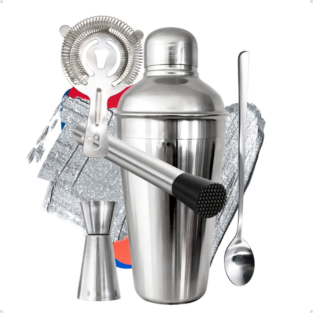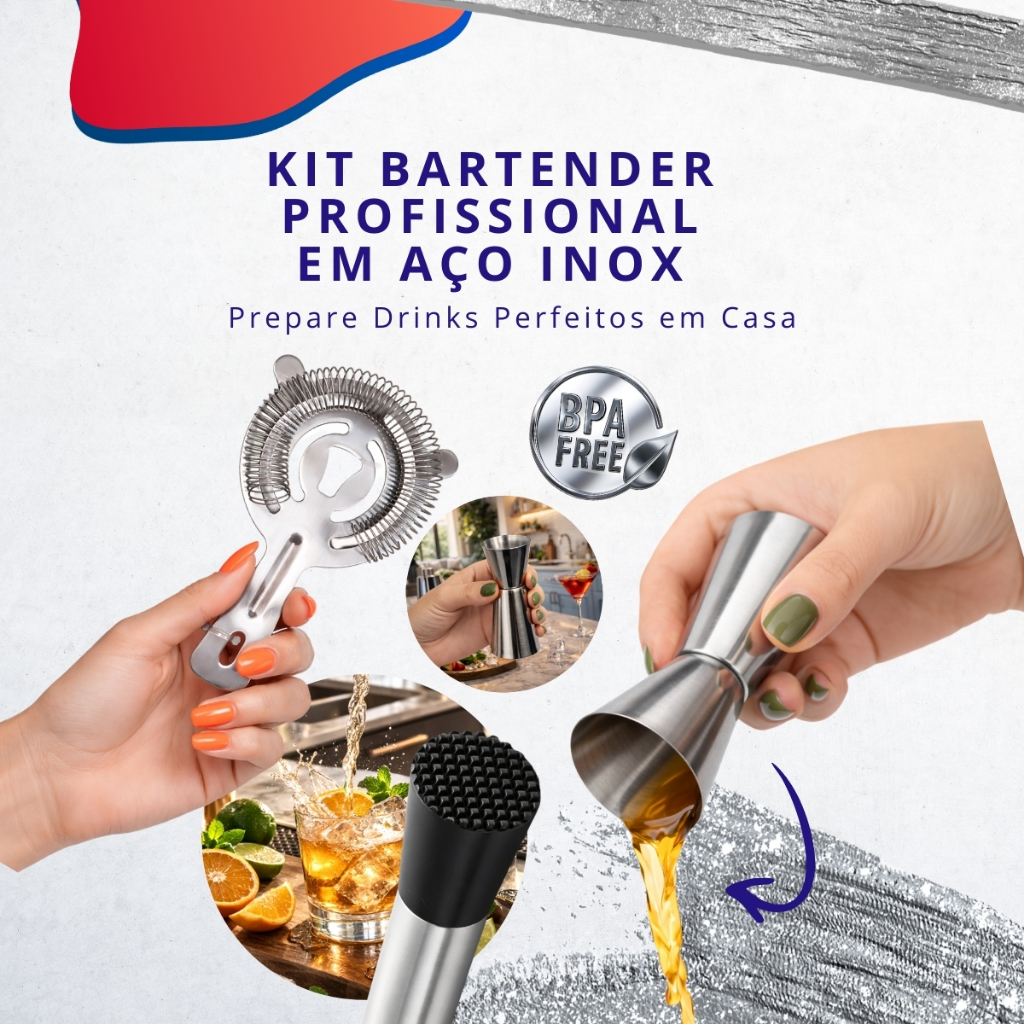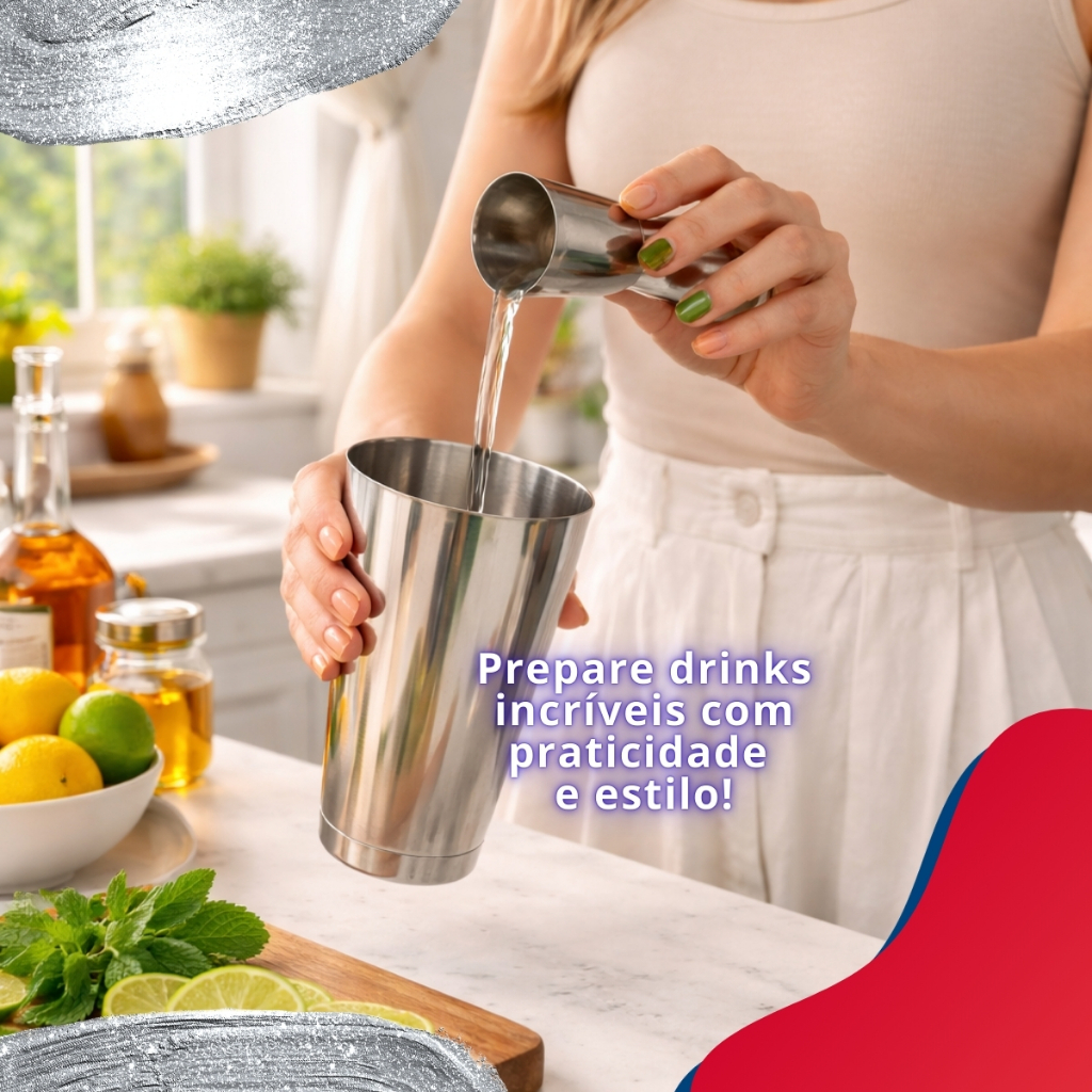 Kit Caipirinha Profissional Coqueteleira 500 Ml Barman Inox Coador Strainer Socador Dosador Colher