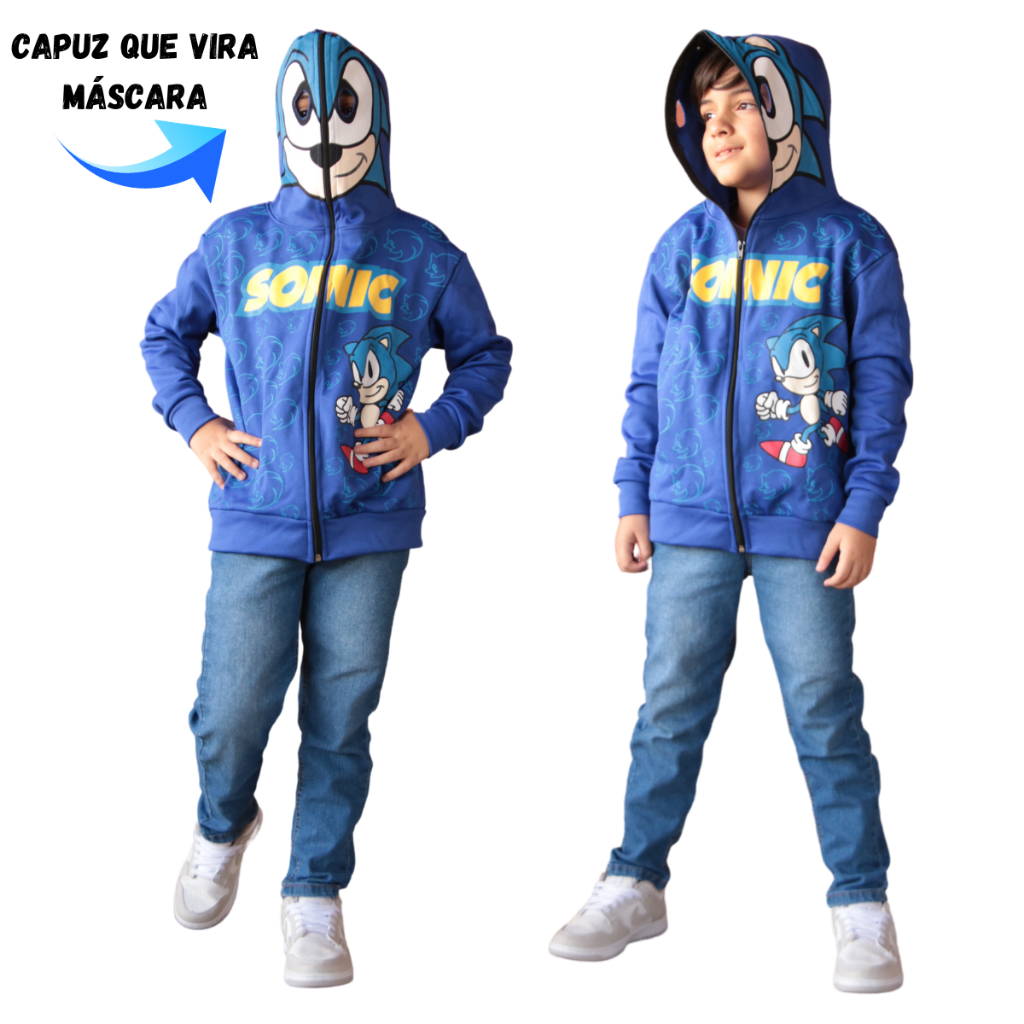 Promoção Blusa casaco moletom sonic capuz/mascara