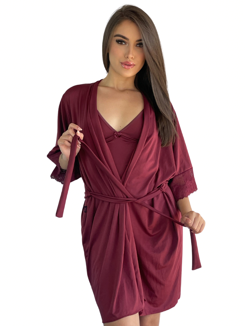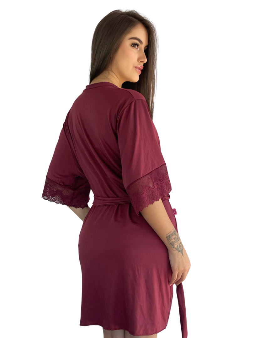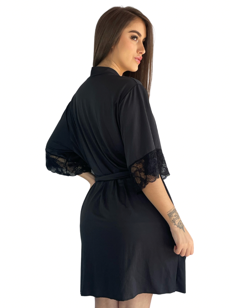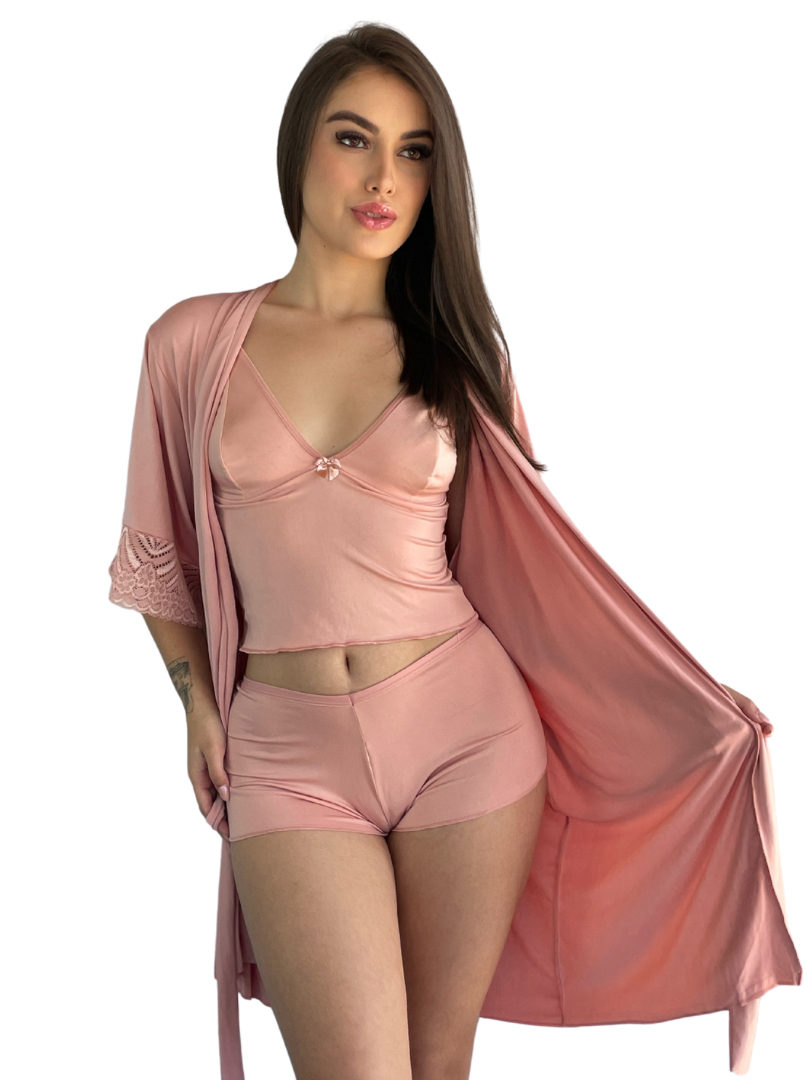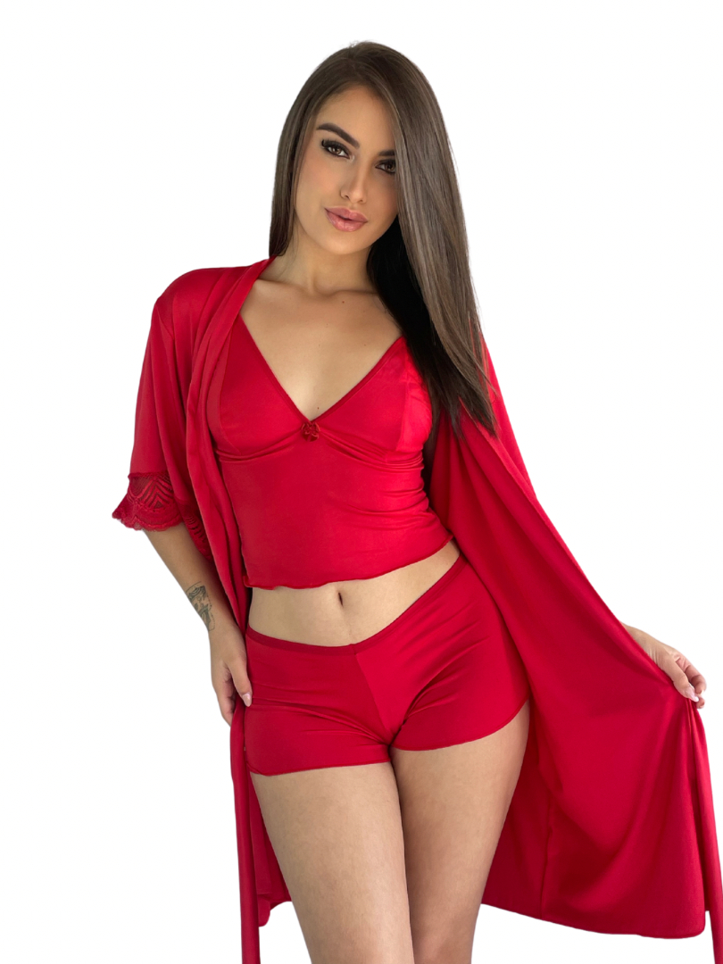 Kit Robe de Renda Com Mangas + Baby Doll Top Poliamida