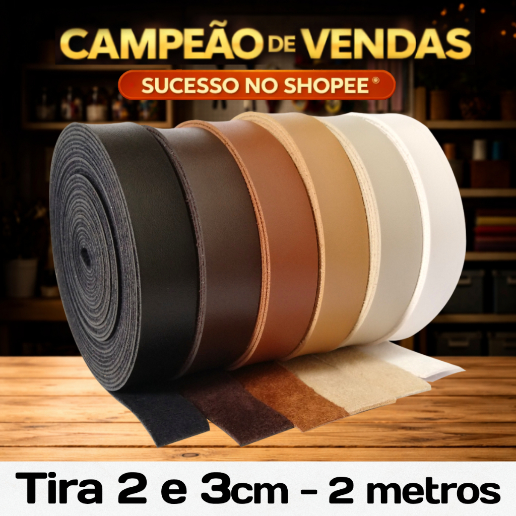 Tira De Couro Ecológico Montana 2 metros - Rolo 2 e 3cm