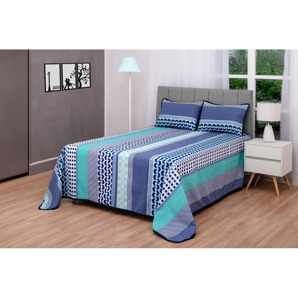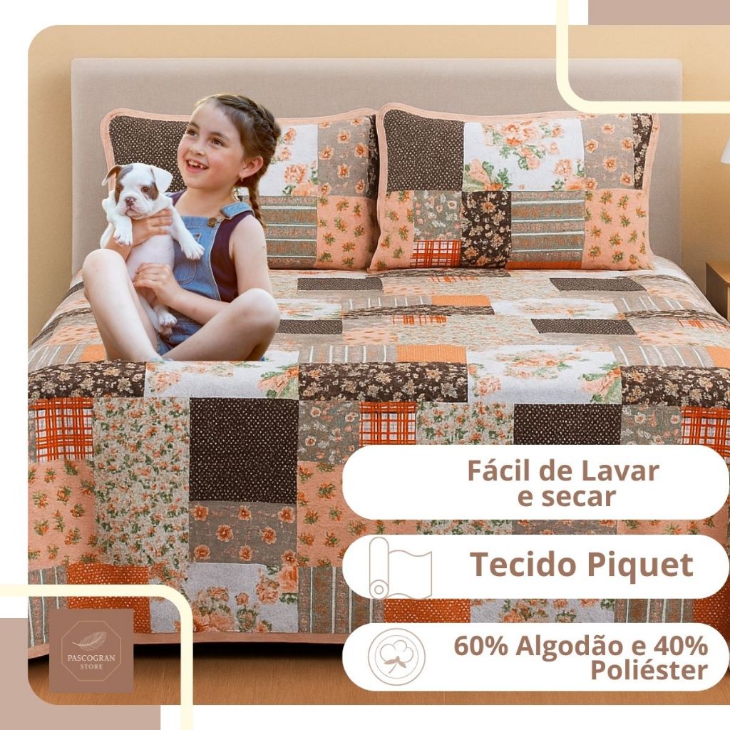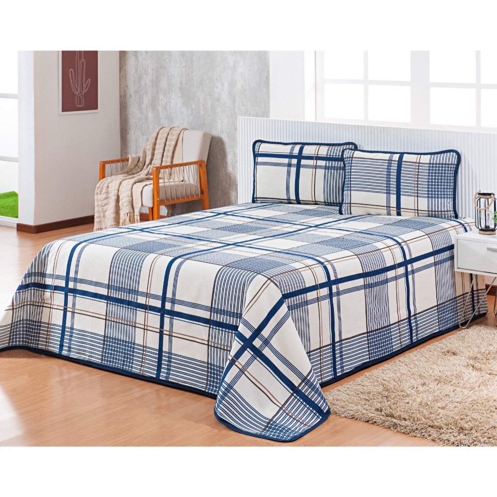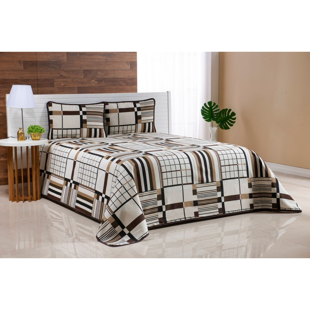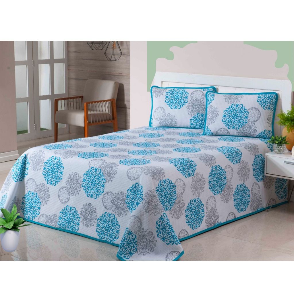 Colcha Cobre Leito Casal Padrão Piquet Estampado 3 Peças