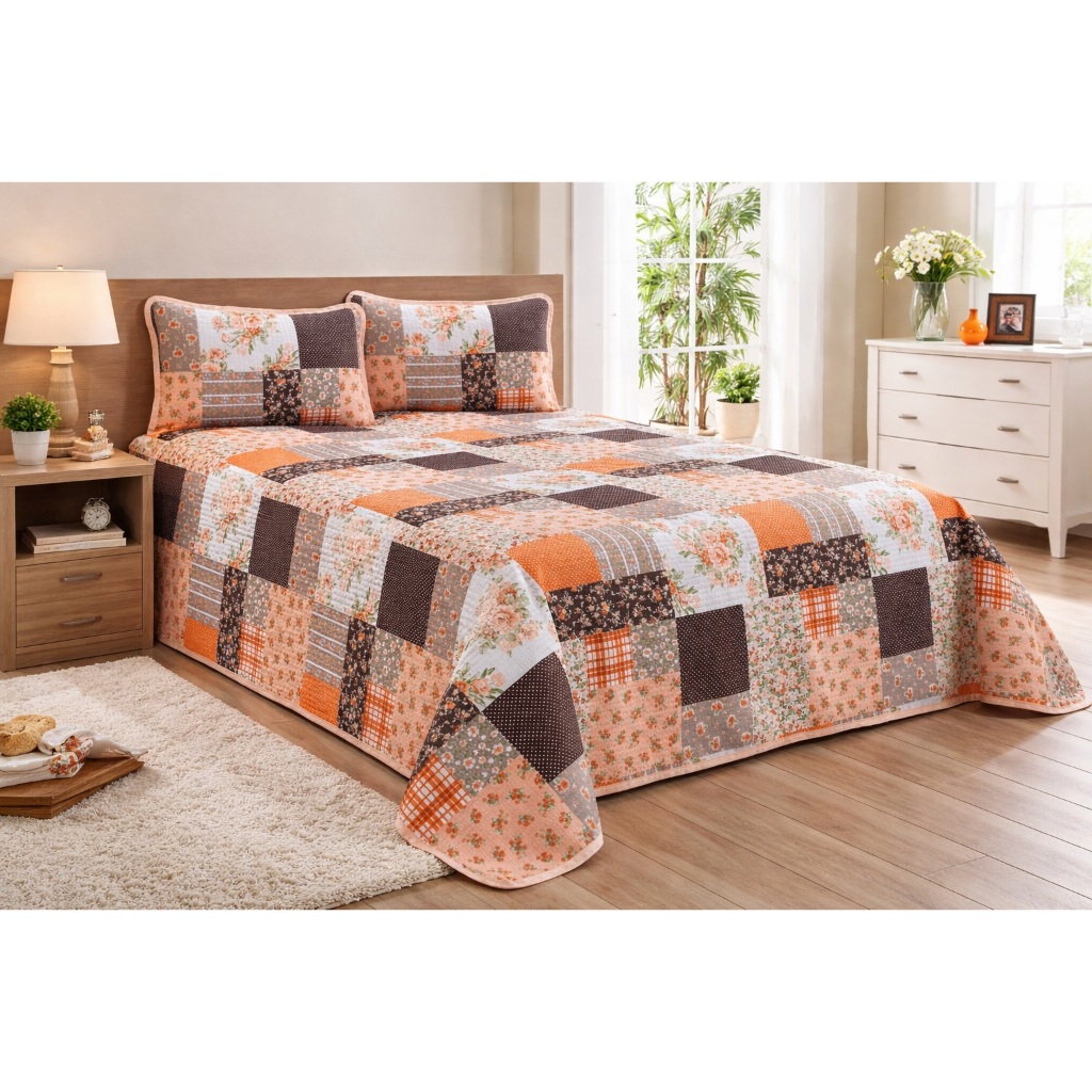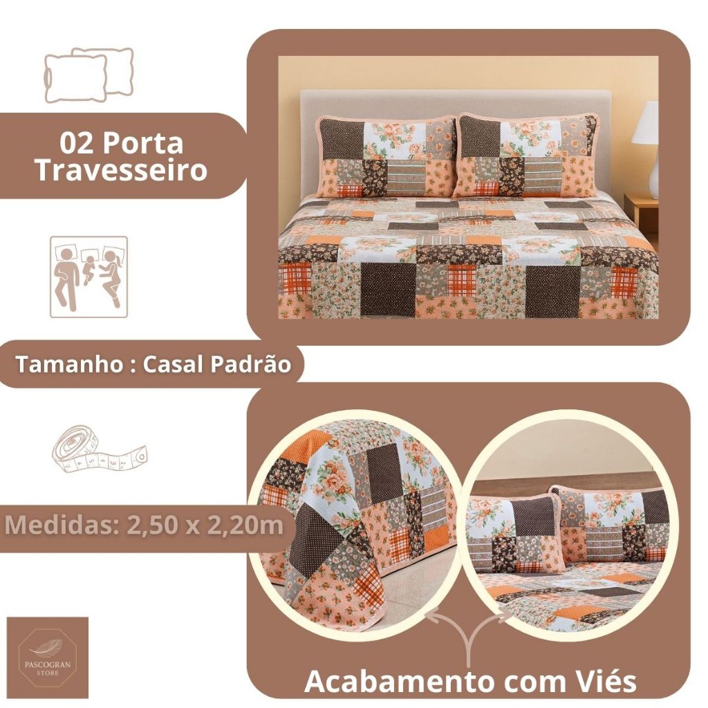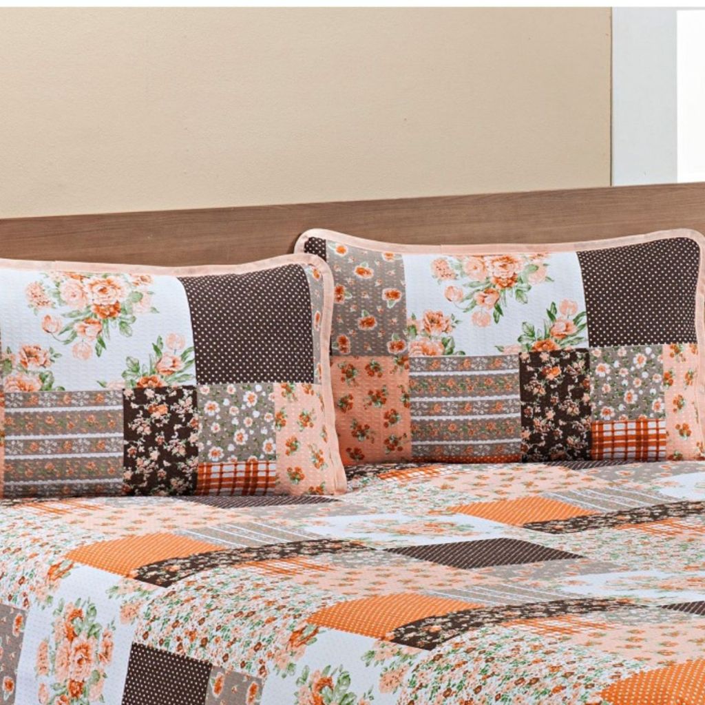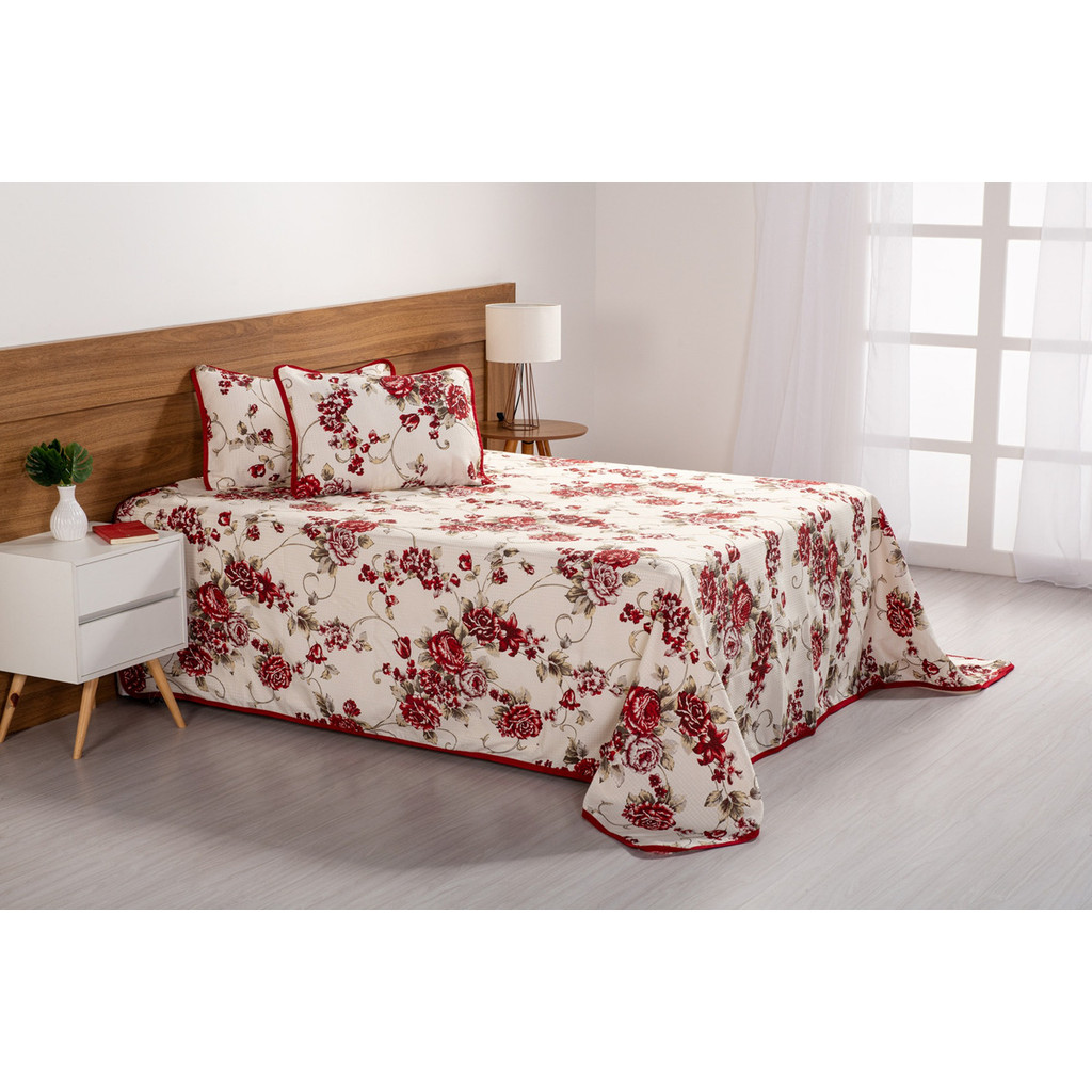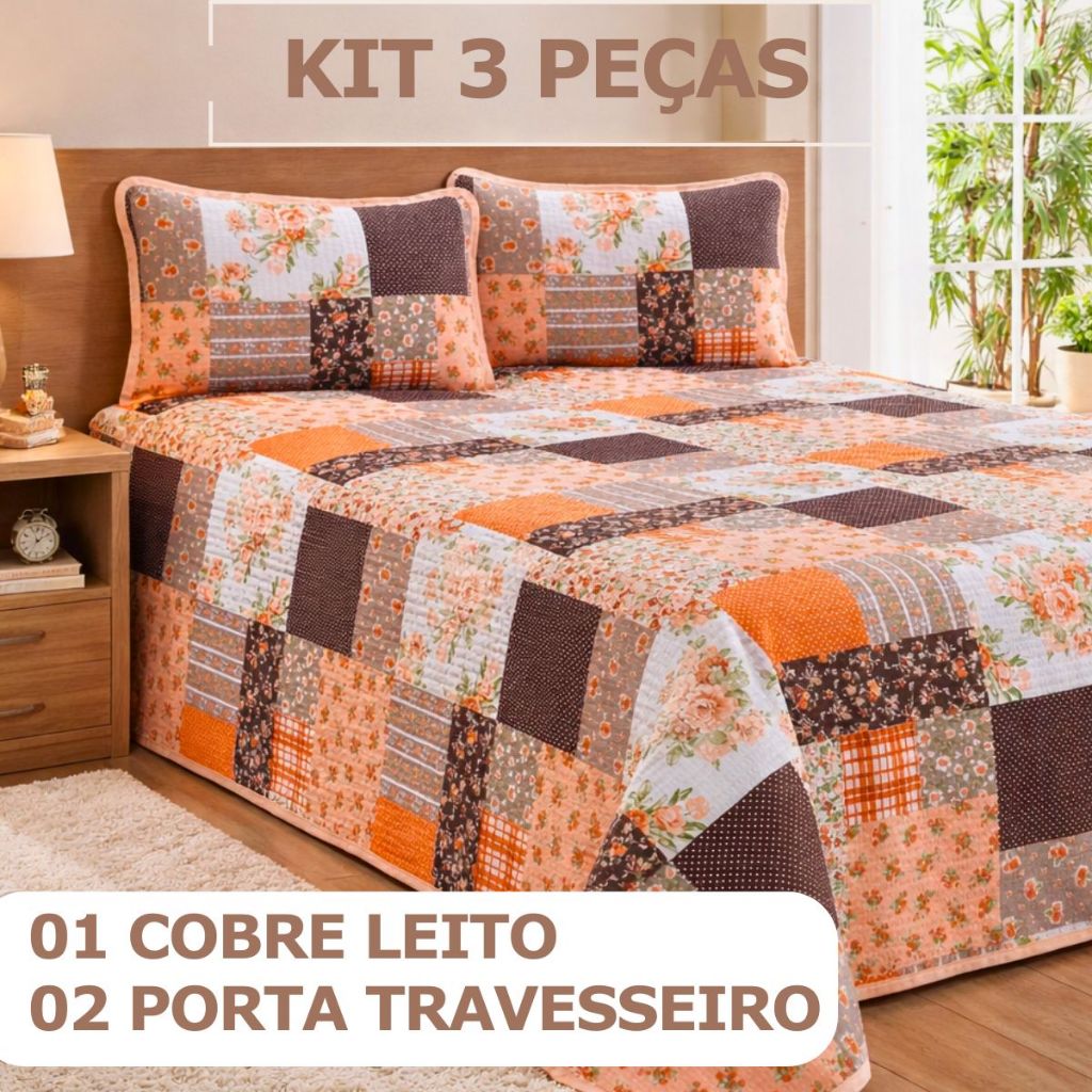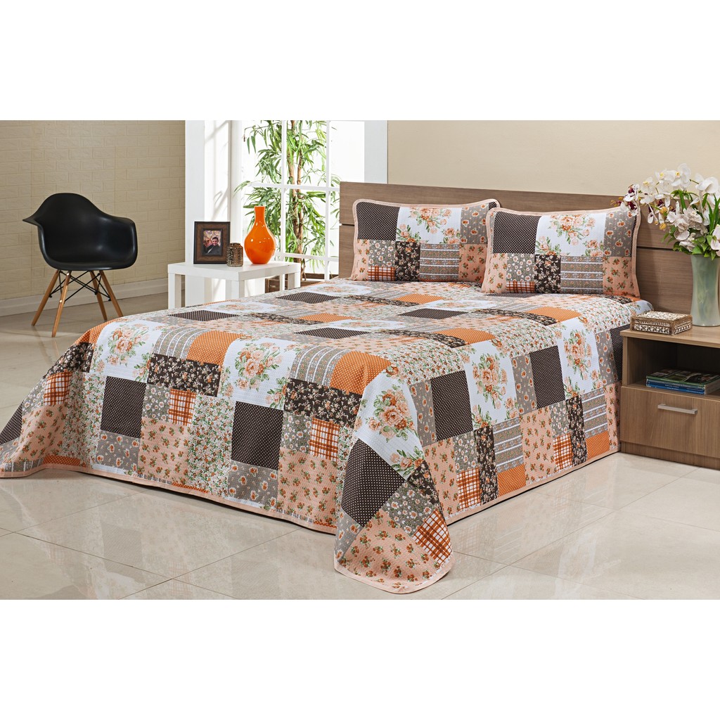 Colcha Cobre Leito Casal Padrão Piquet Estampado 3 Peças