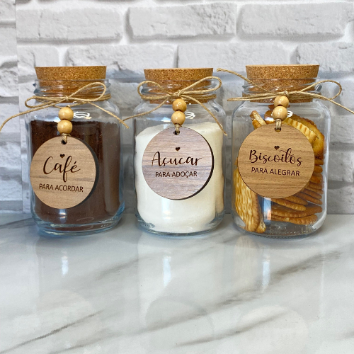 Kit Potes Hermeticos 600ML Tampa Rolha e Pingente Decorativo