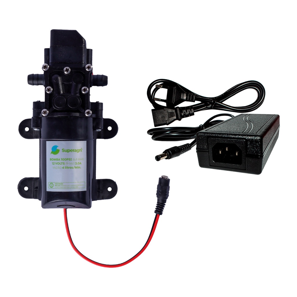 Kit Bomba 100 PSI 12V Automática + Fonte Bivolt Superagri Plug