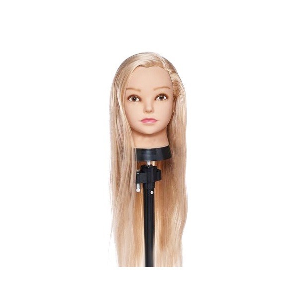 Cabeça de Boneca Para Treino 100% Sintética Loira c/ Suporte de Mesa + Tesoura