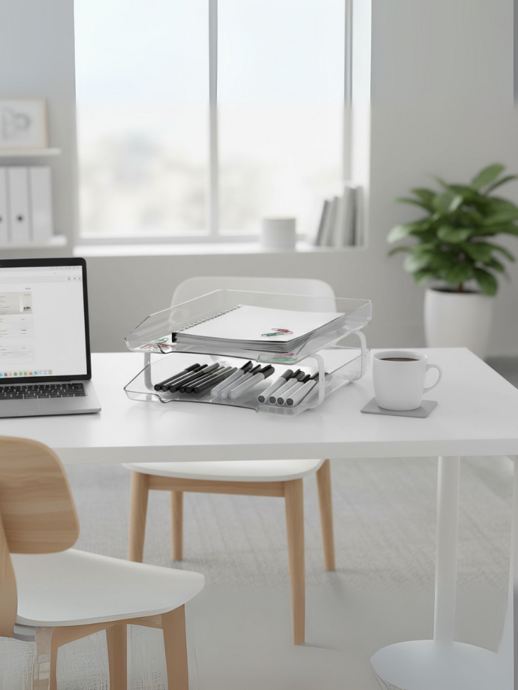 Caixa Bandeja Correspondência Organizadora Dupla Cristal Sustentável com Estilo