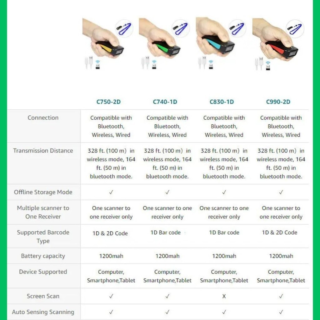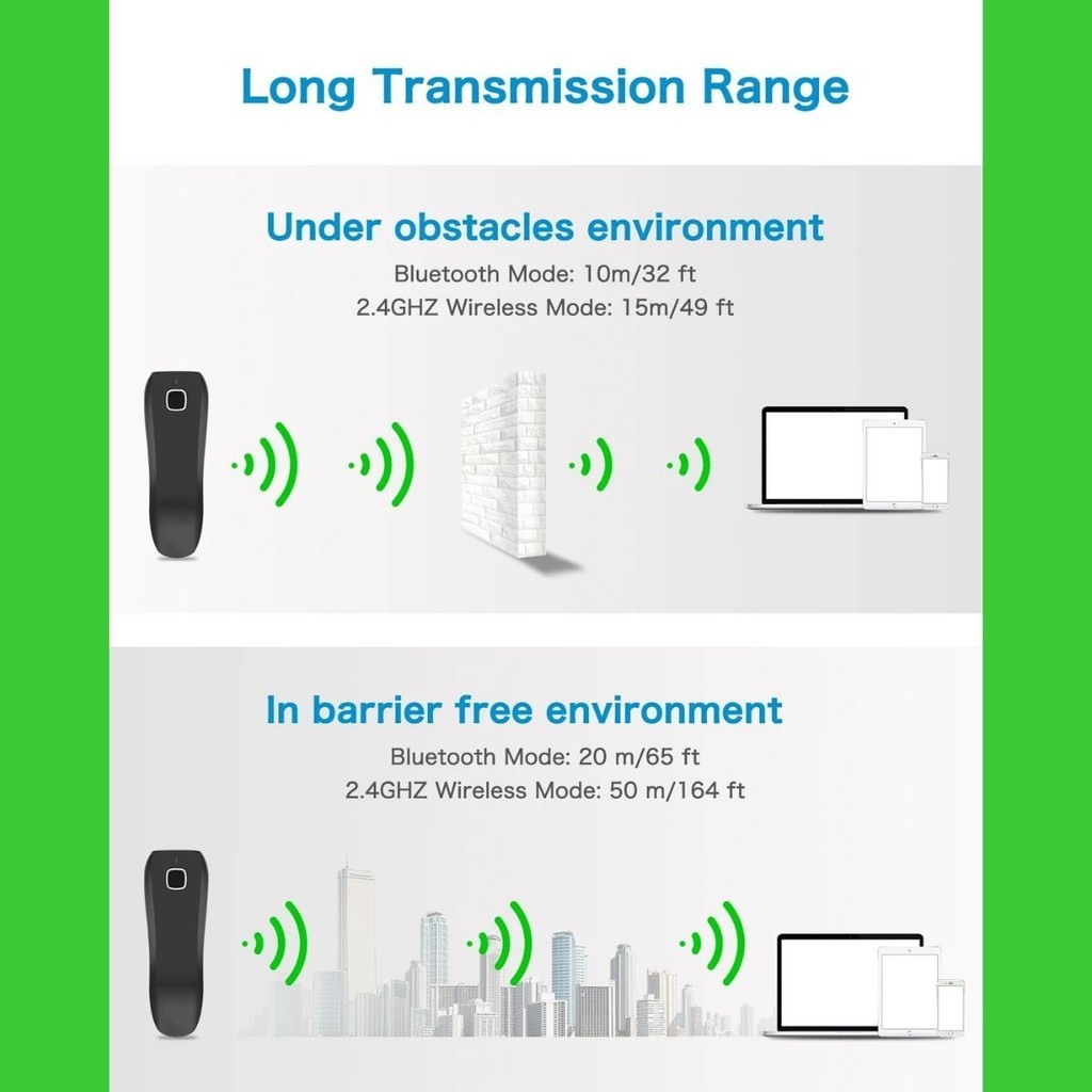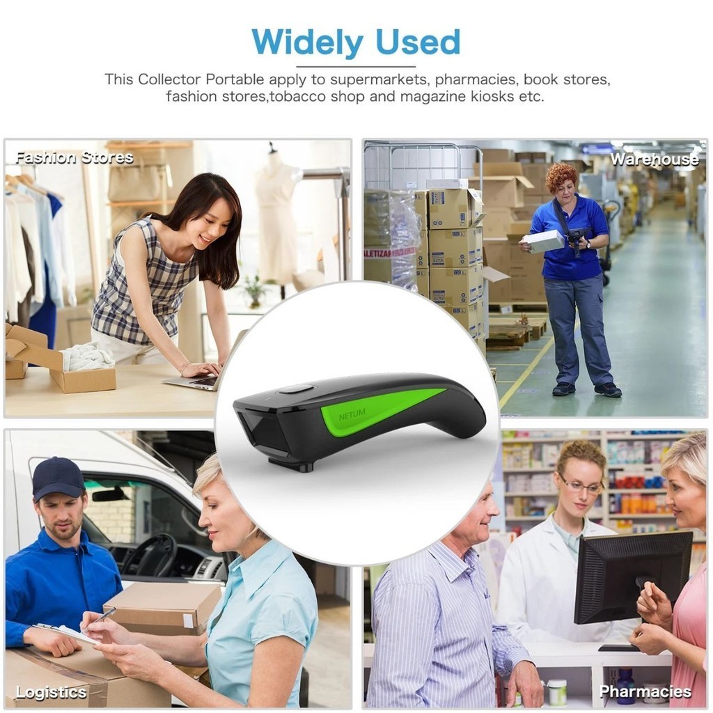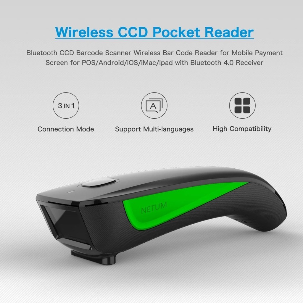 Scanner Leitor De Código De Barras Sem Fio Portátil 1D Bluetooth USB