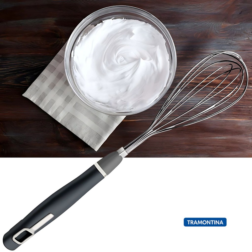 Batedor Manual Tramontina Verano Inox Cabo Polipropileno Ônix Batedor clara de Ovos Fuê Fues Bolo Cozinha Utensilio