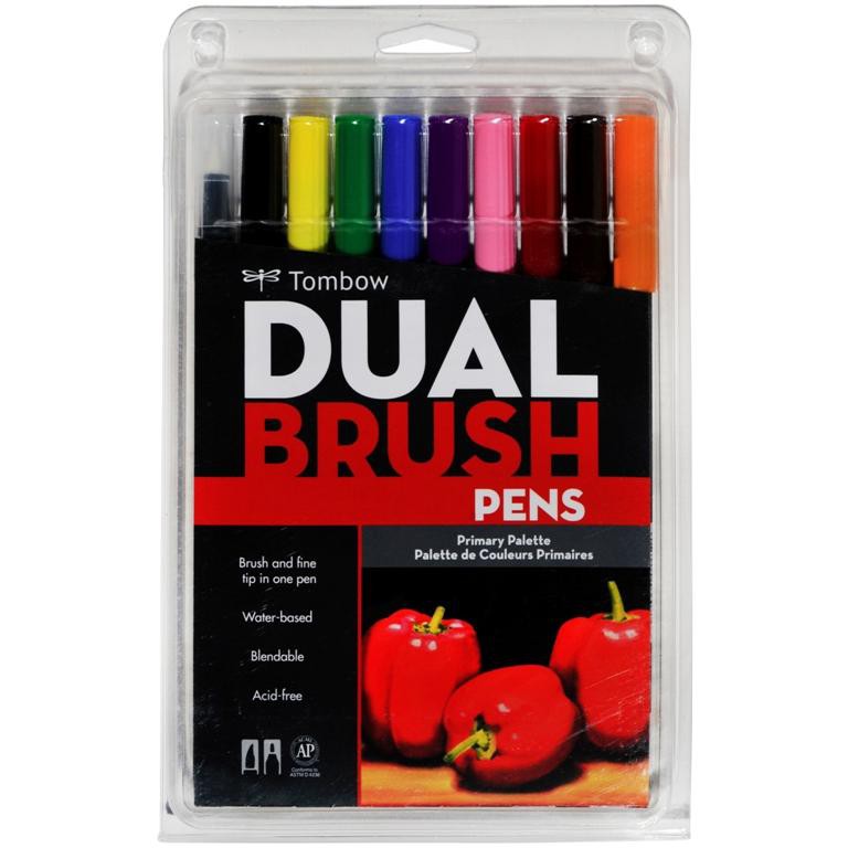 Caneta Marcador Dual Brush Tombow Pincel Artístico Com 9 Cores + 1 Blender