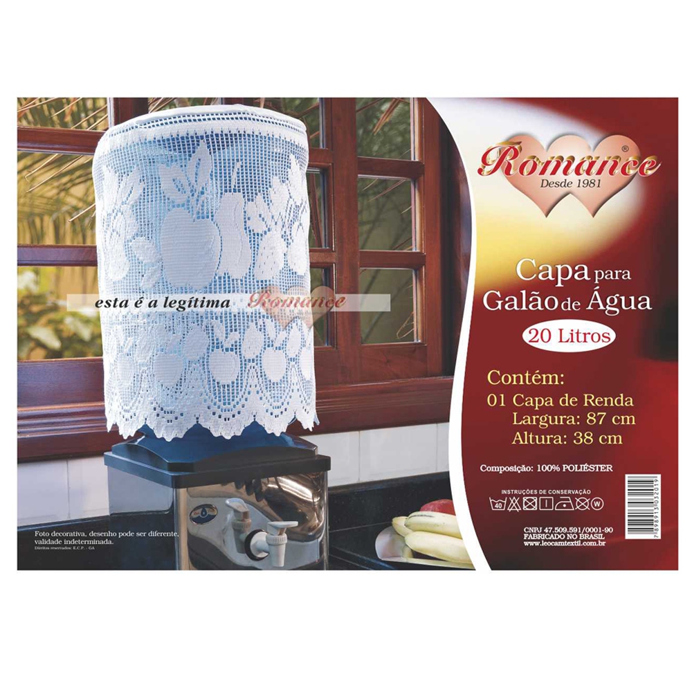 Capa de Galão de 20 litros de Água Branca de Renda
