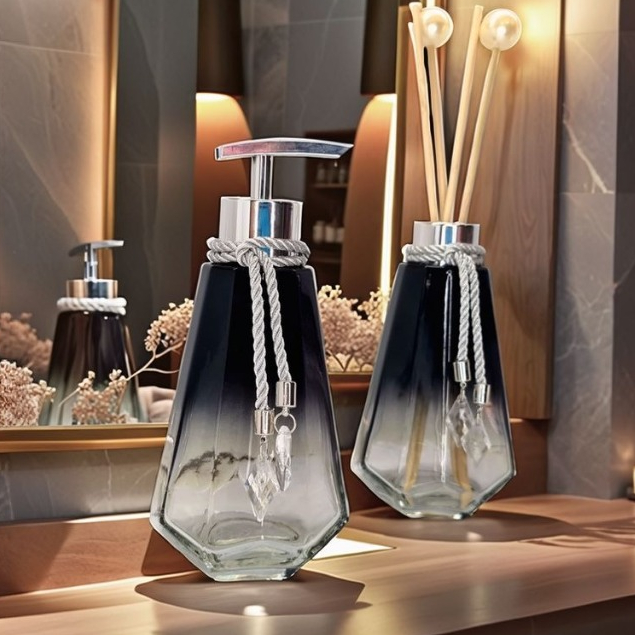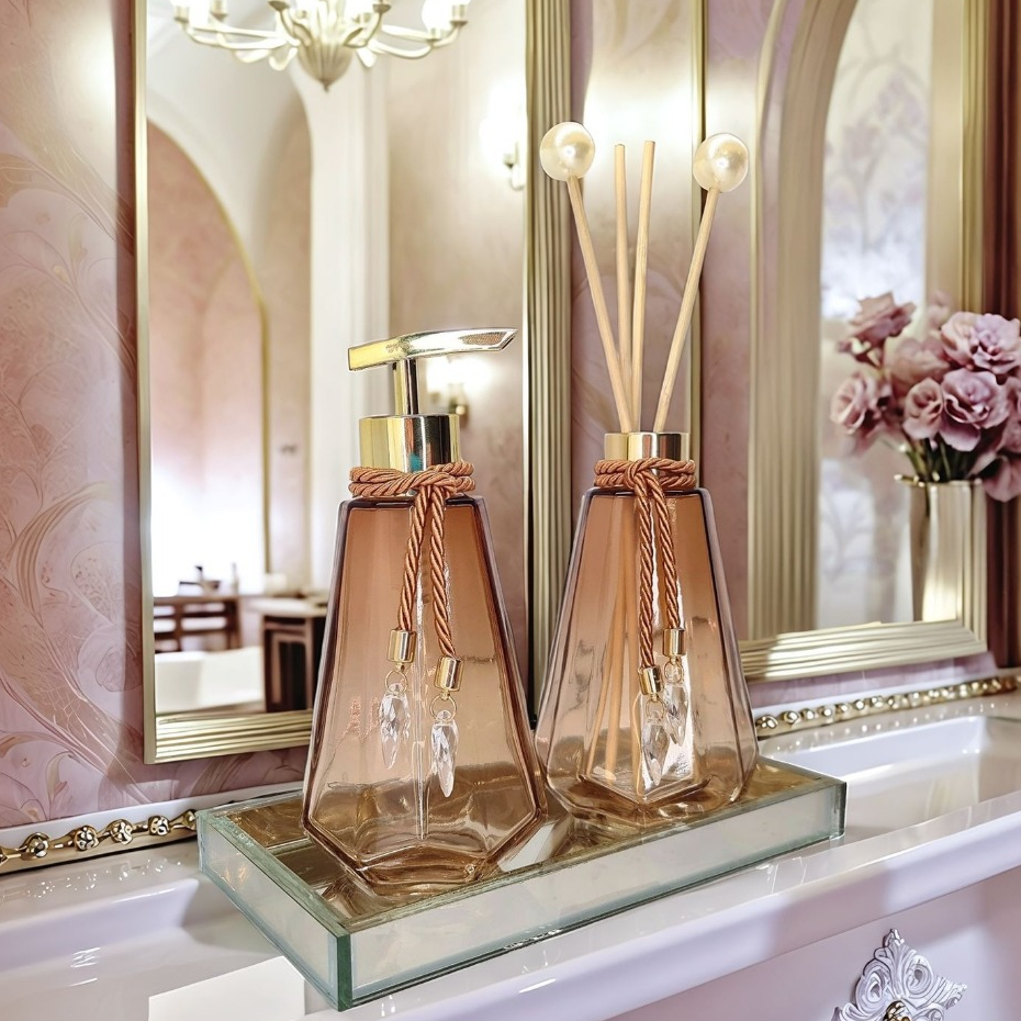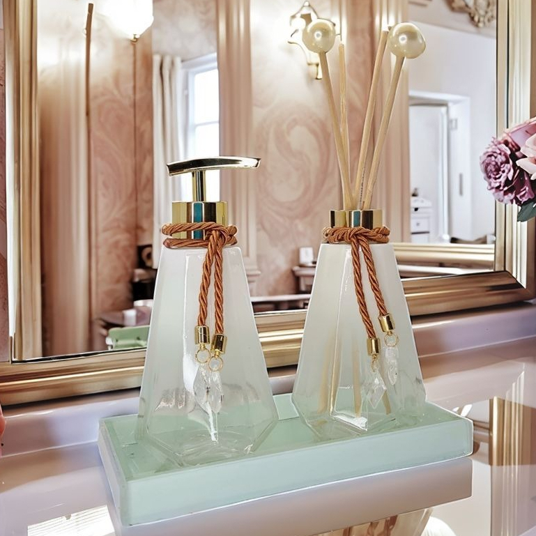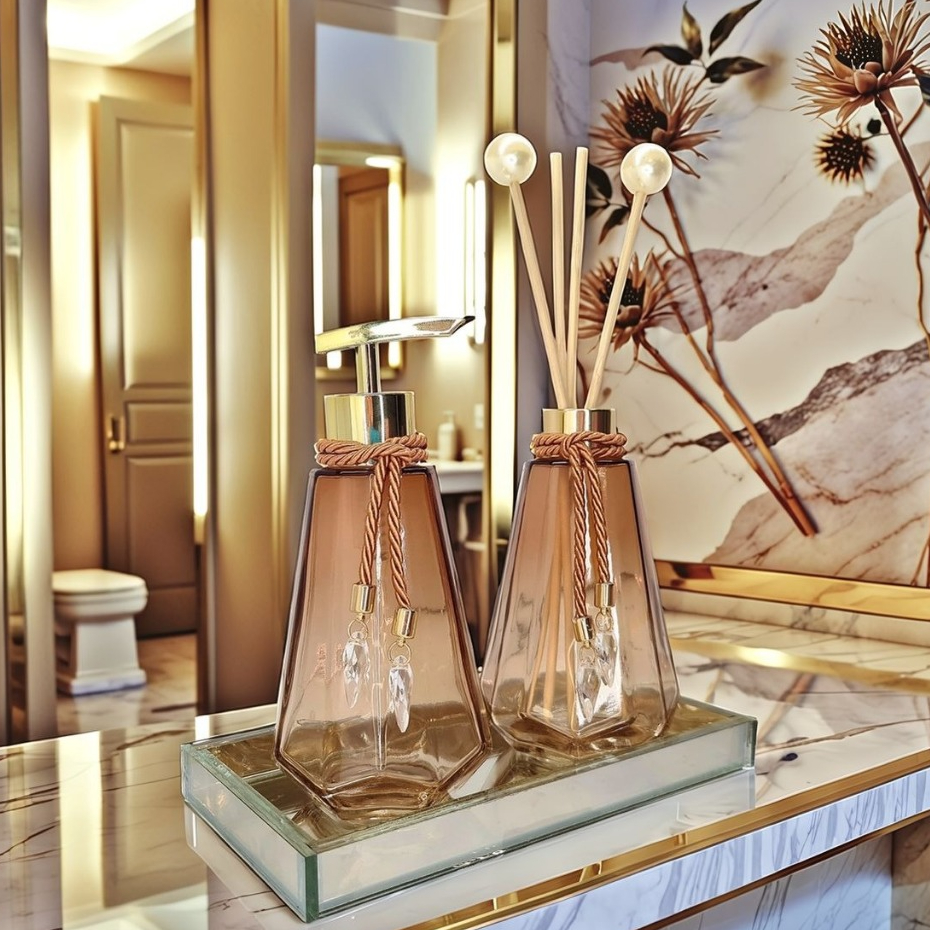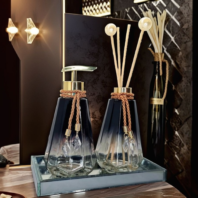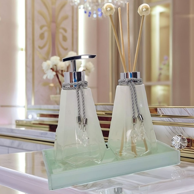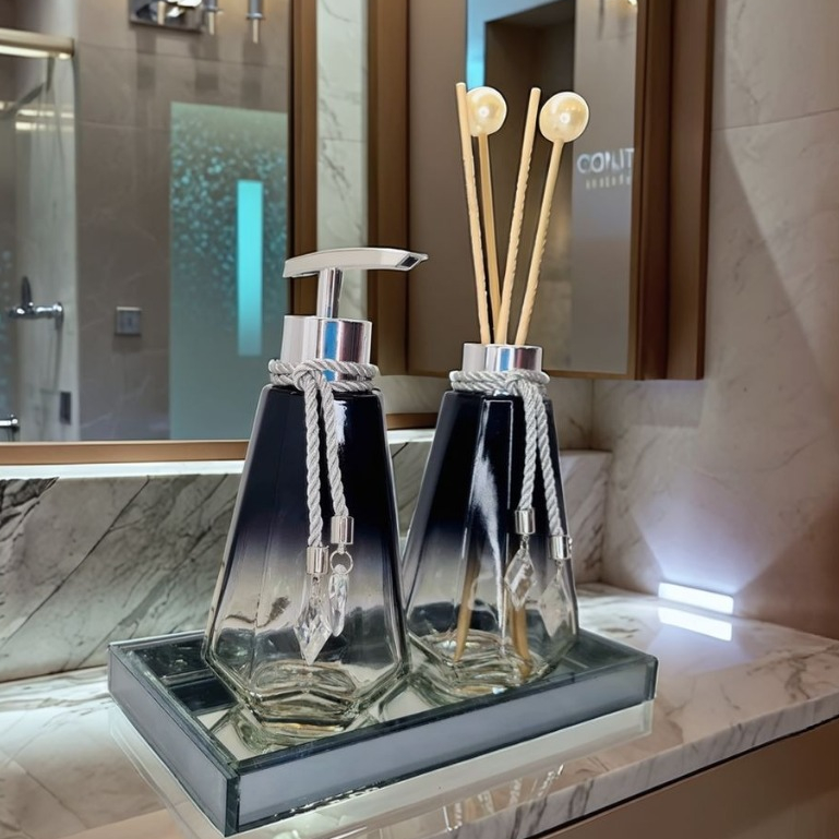Kit Lavabo Completo Vidro 300ml Com Bandeja | Luxo Presente Decoração Banheiro Oferta Chique