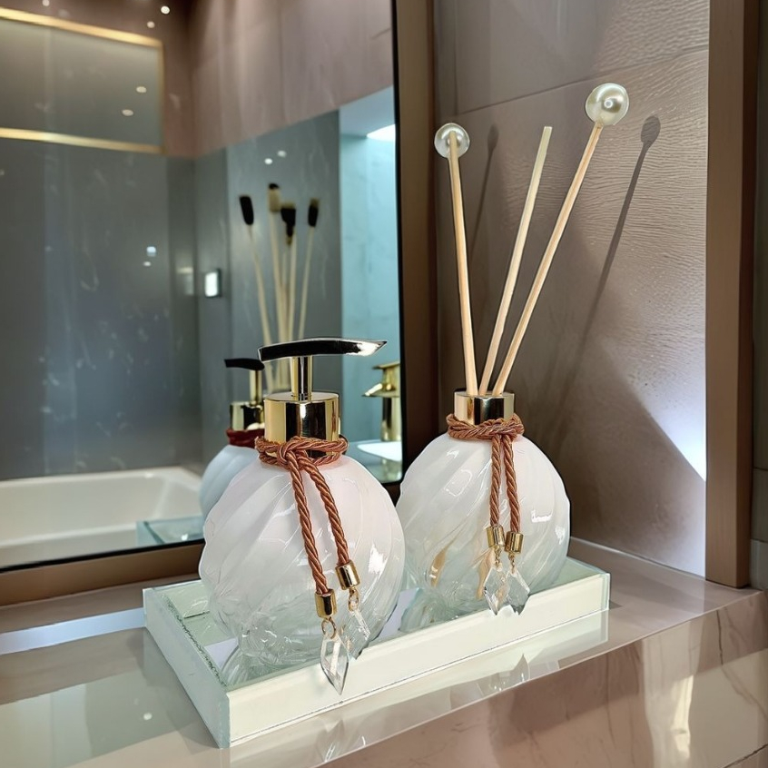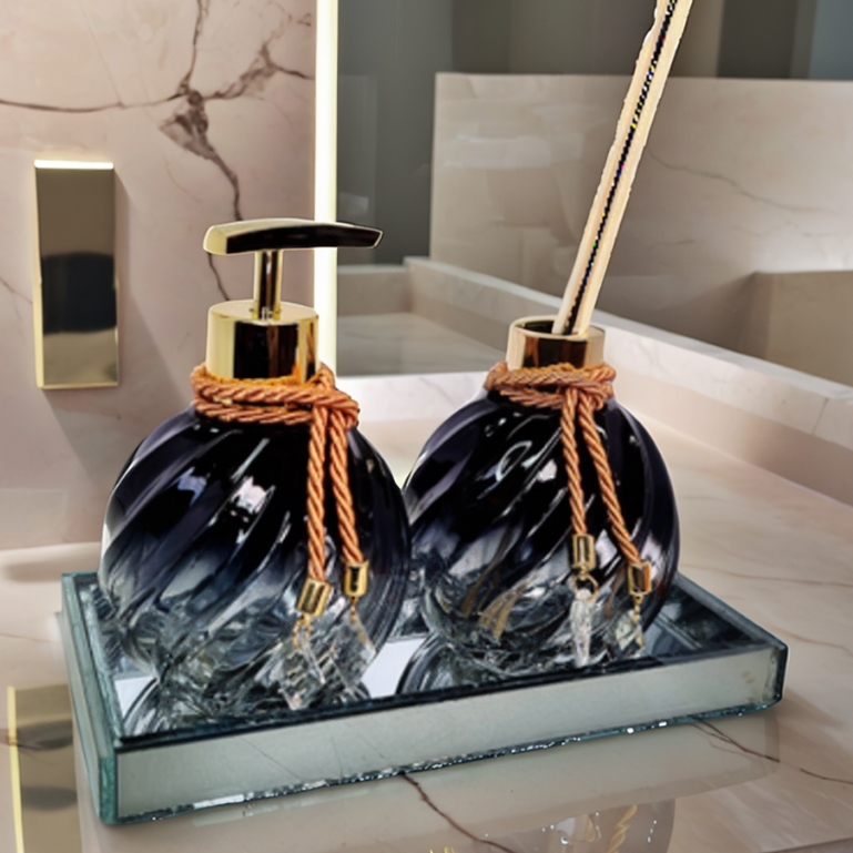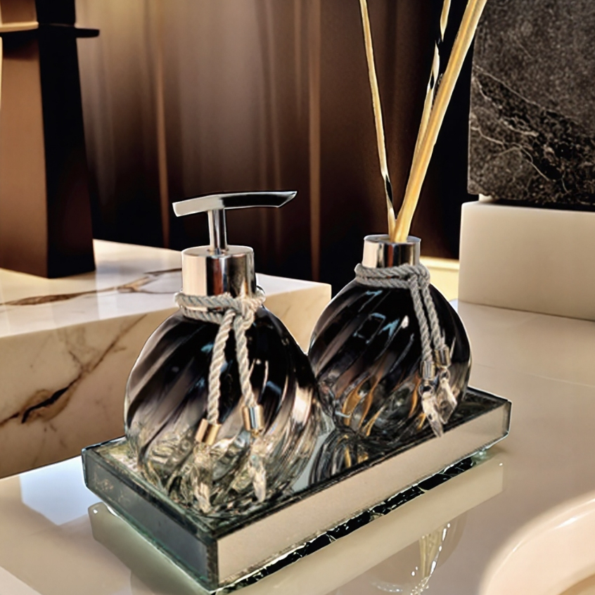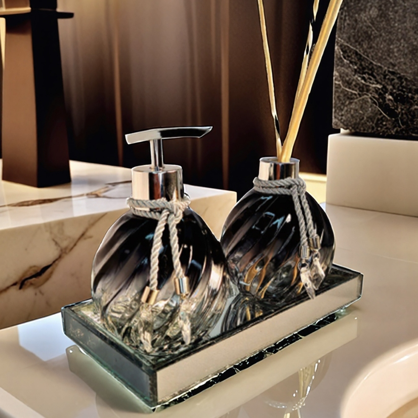Kit Lavabo Completo 3 Peças Vidro 300ml Com Bandeja | Luxo Decoração Banheiro Casa Nova Oferta