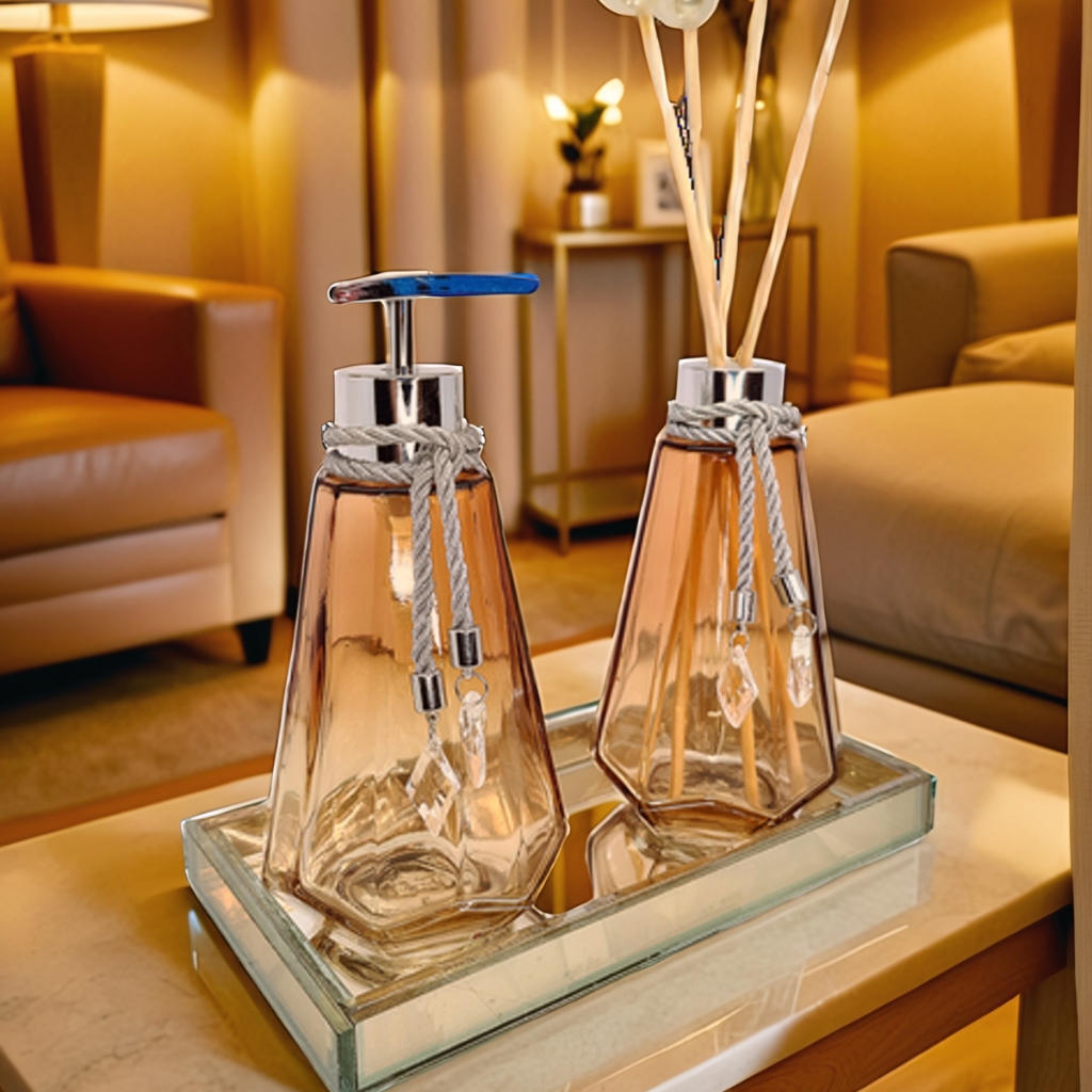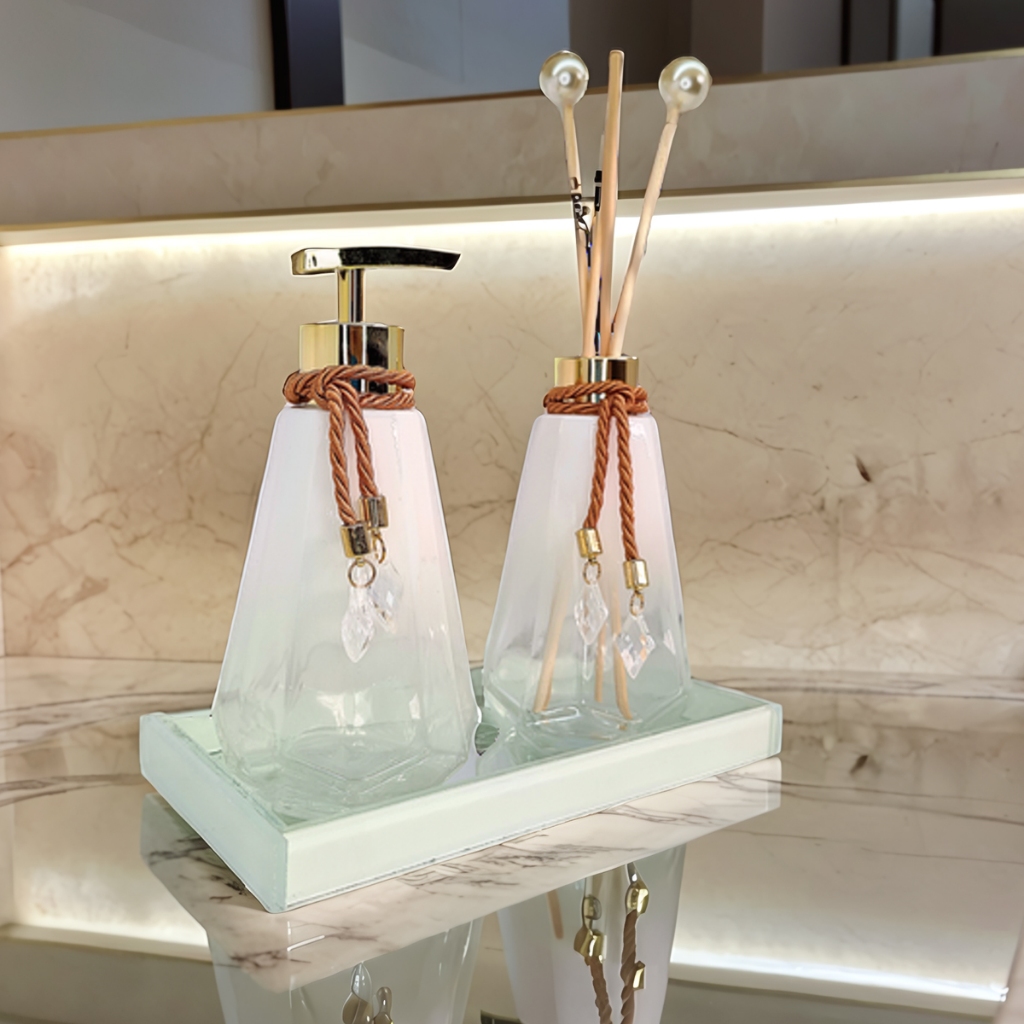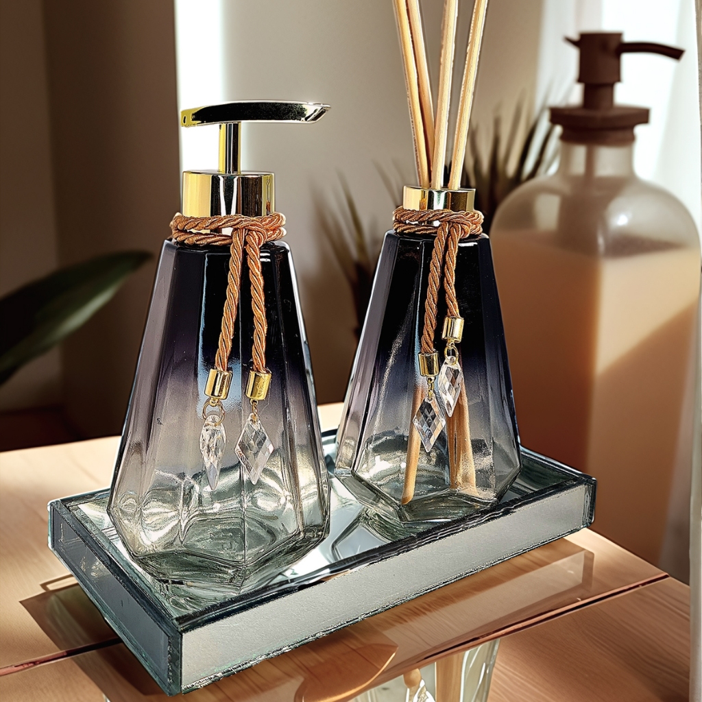 Kit Lavabo Preto Branco Ambar Vidro 300ml Completo Com Bandeja Presente Chique Casa Nova Oferta