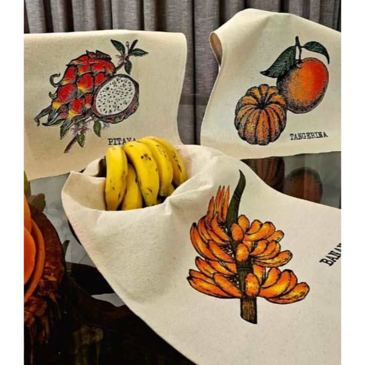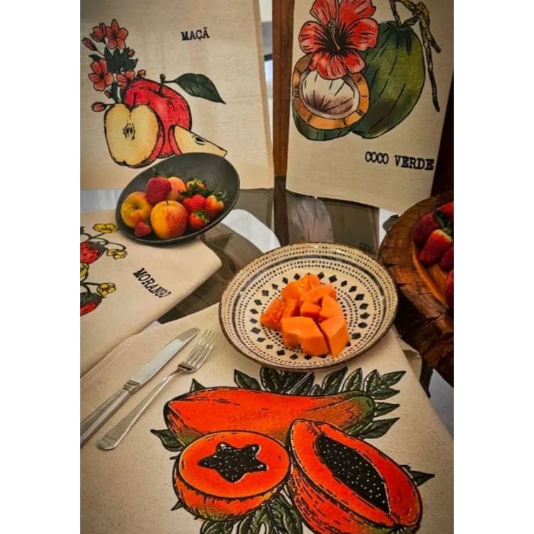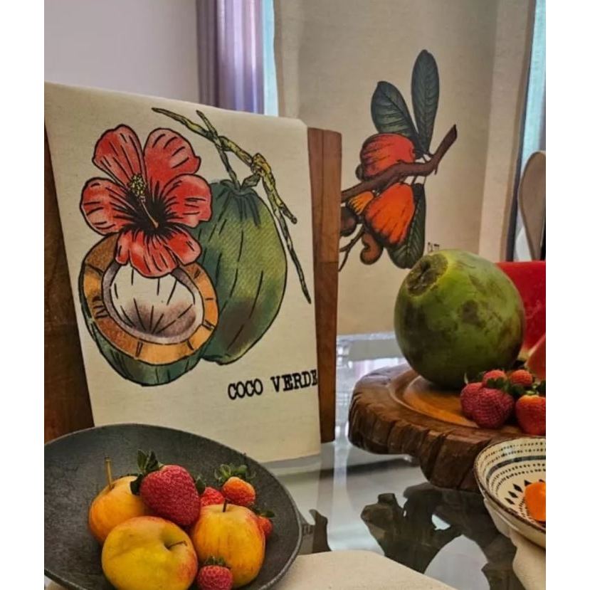 Kit de Pano de prato tempero ipê frutas especiarias cru grande rustico 45x72cm 100% Algodão