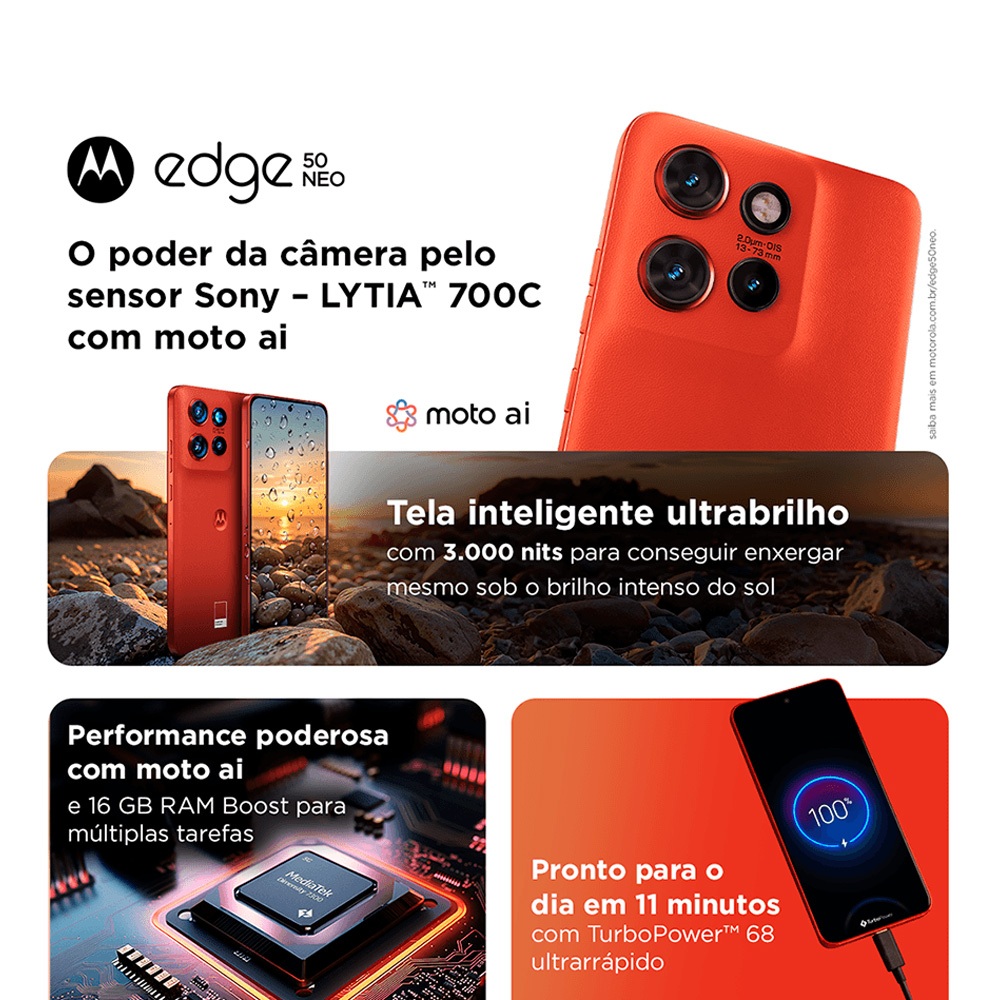 Motorola Edge 50 Neo 256GB 16GB Ram Tela 6.4'' Câmera 50Mp