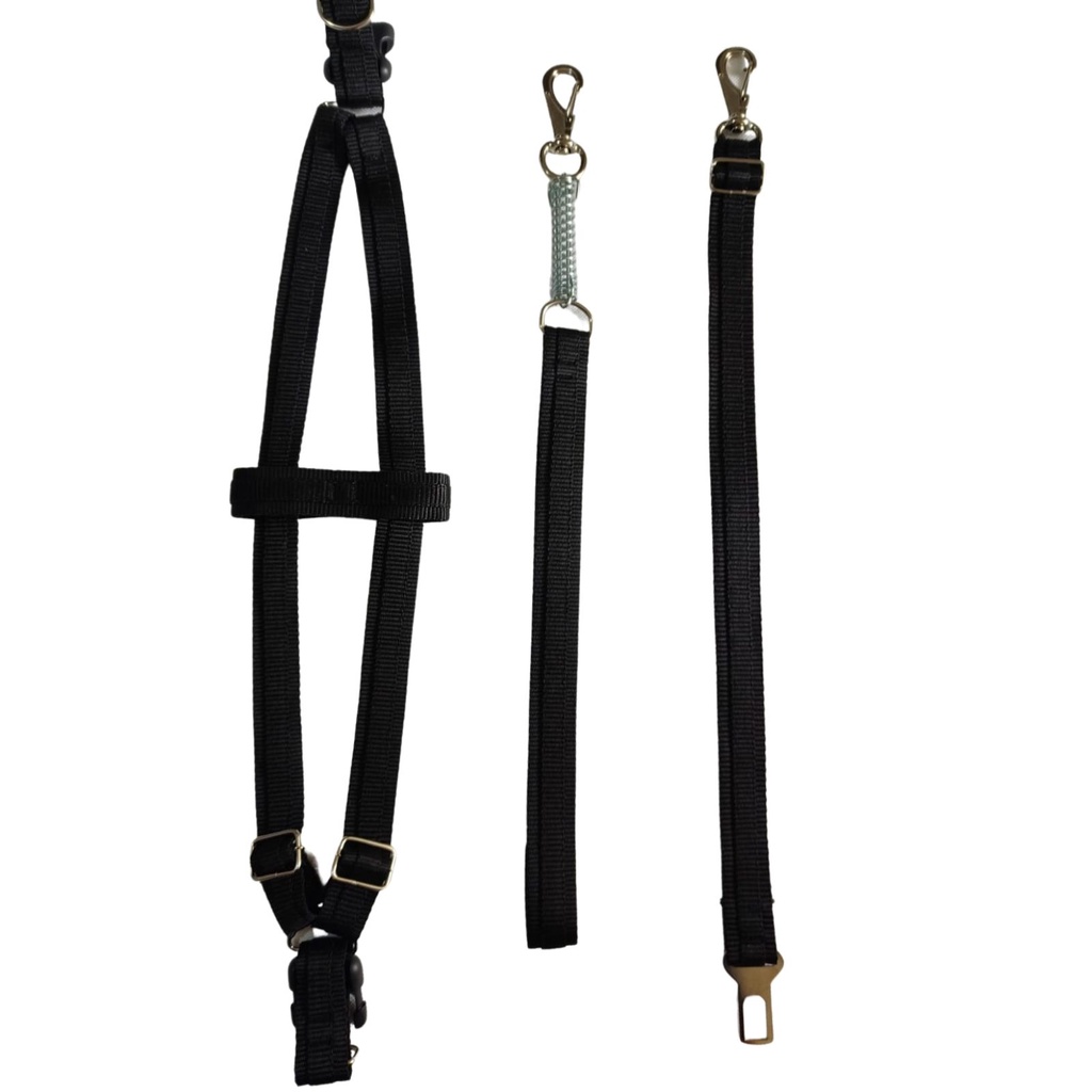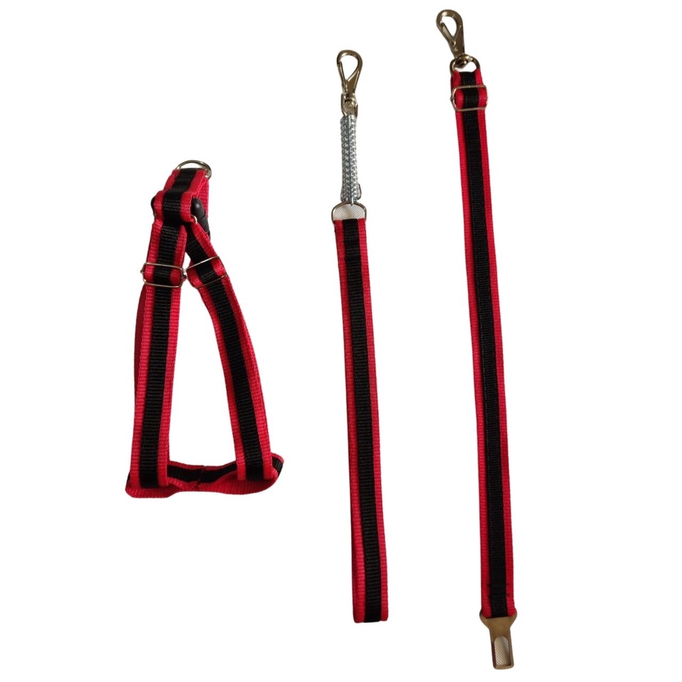 Kit coleira peitoral + cinto de segurança viagem para cachorros de pequeno médio e grande porte