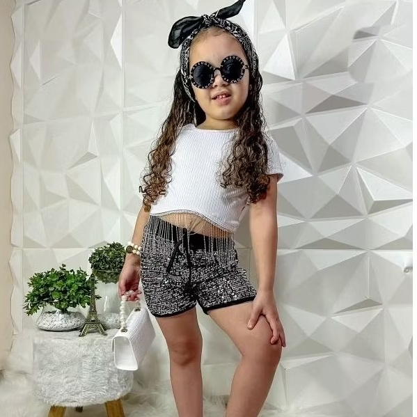 shorts infantil menina paetes lantejoulas brilhos vermelho final de ano Natal