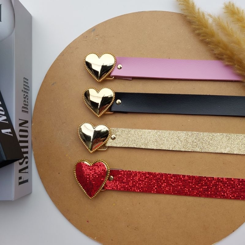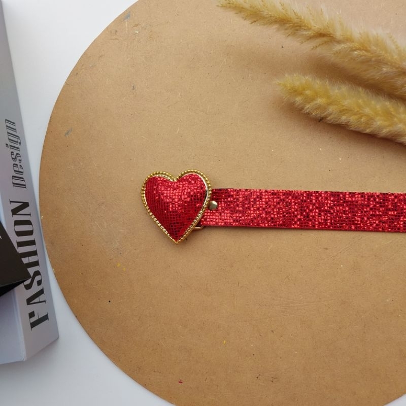 Cinto infantil juvenil adolescente menina tendência Natal coração dourado vermelho Natal Ano Novo moda blogueirinha