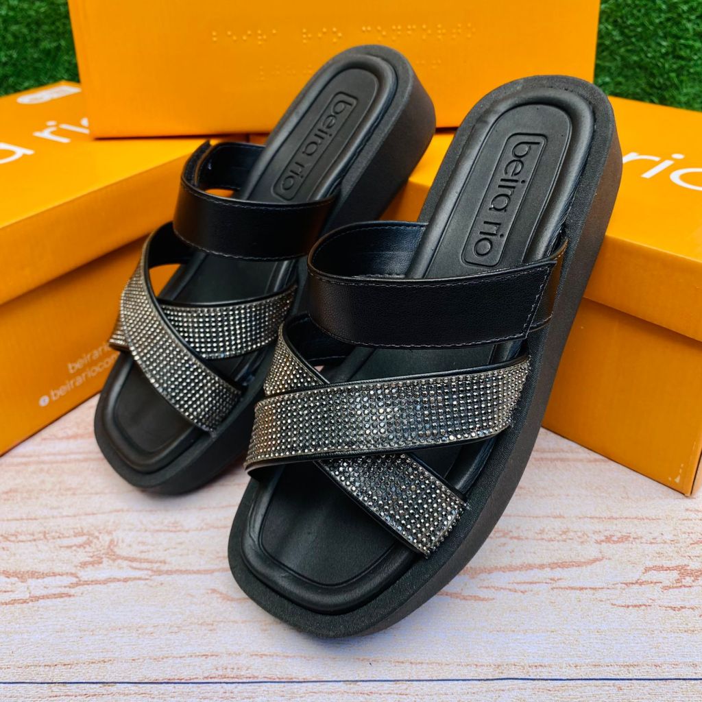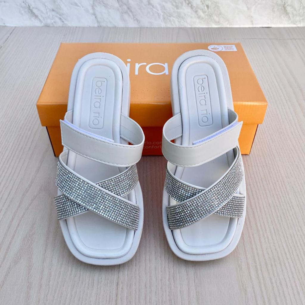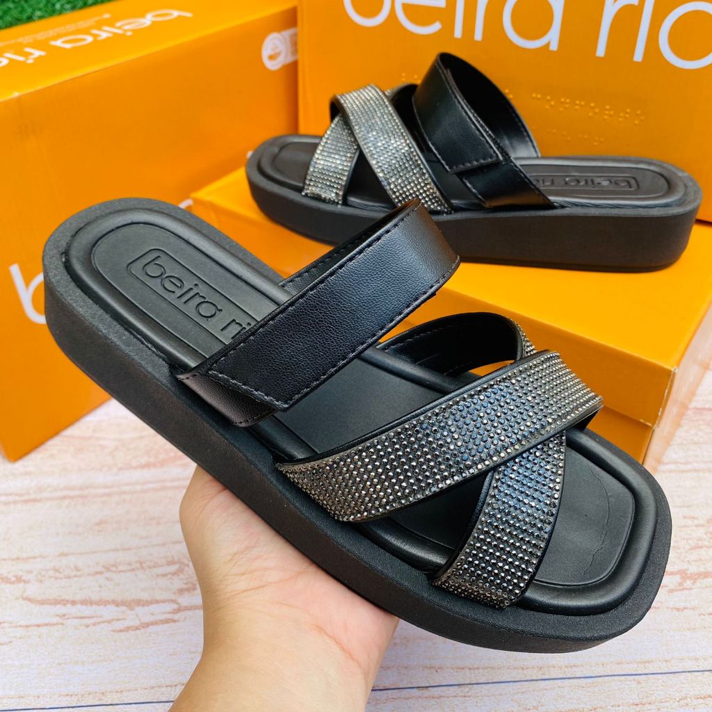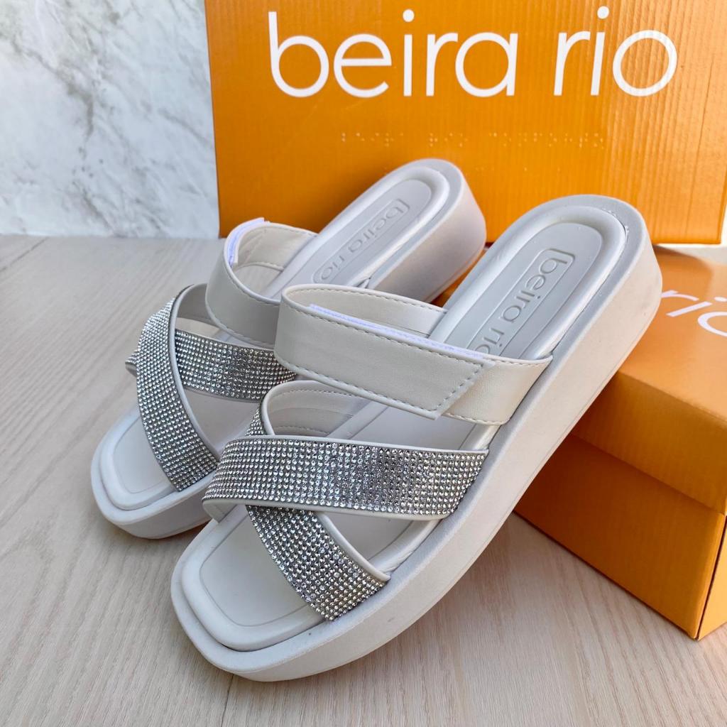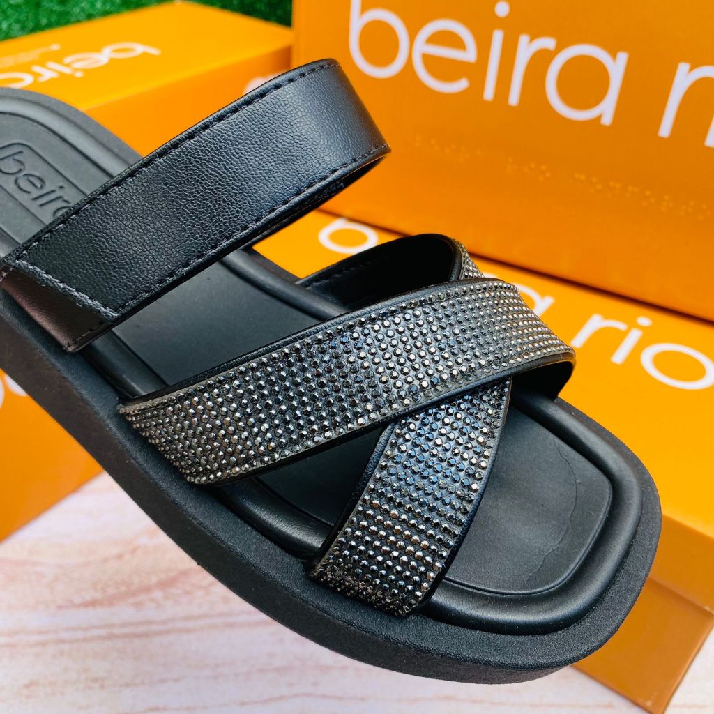 Papete Sandália X Beira Rio Brilho Feminina Casual Conforto Regulável Ajuste