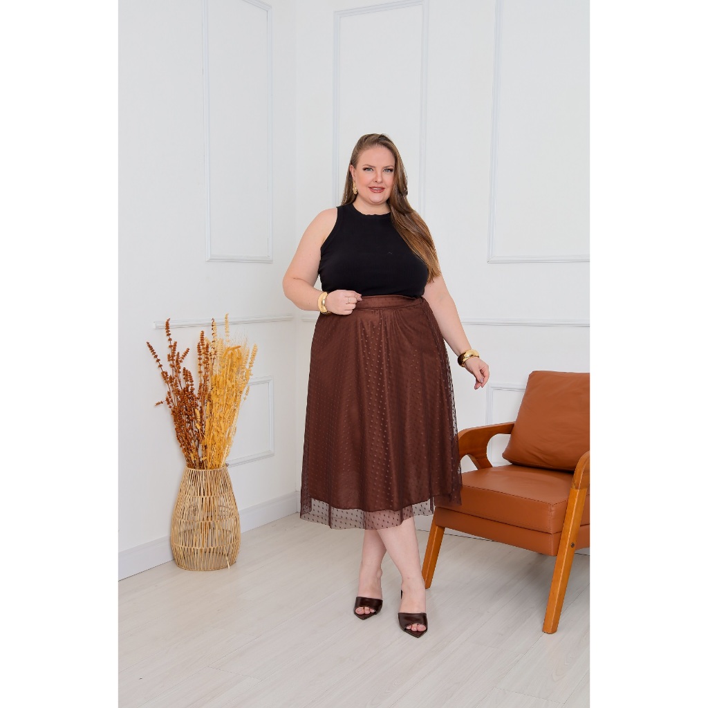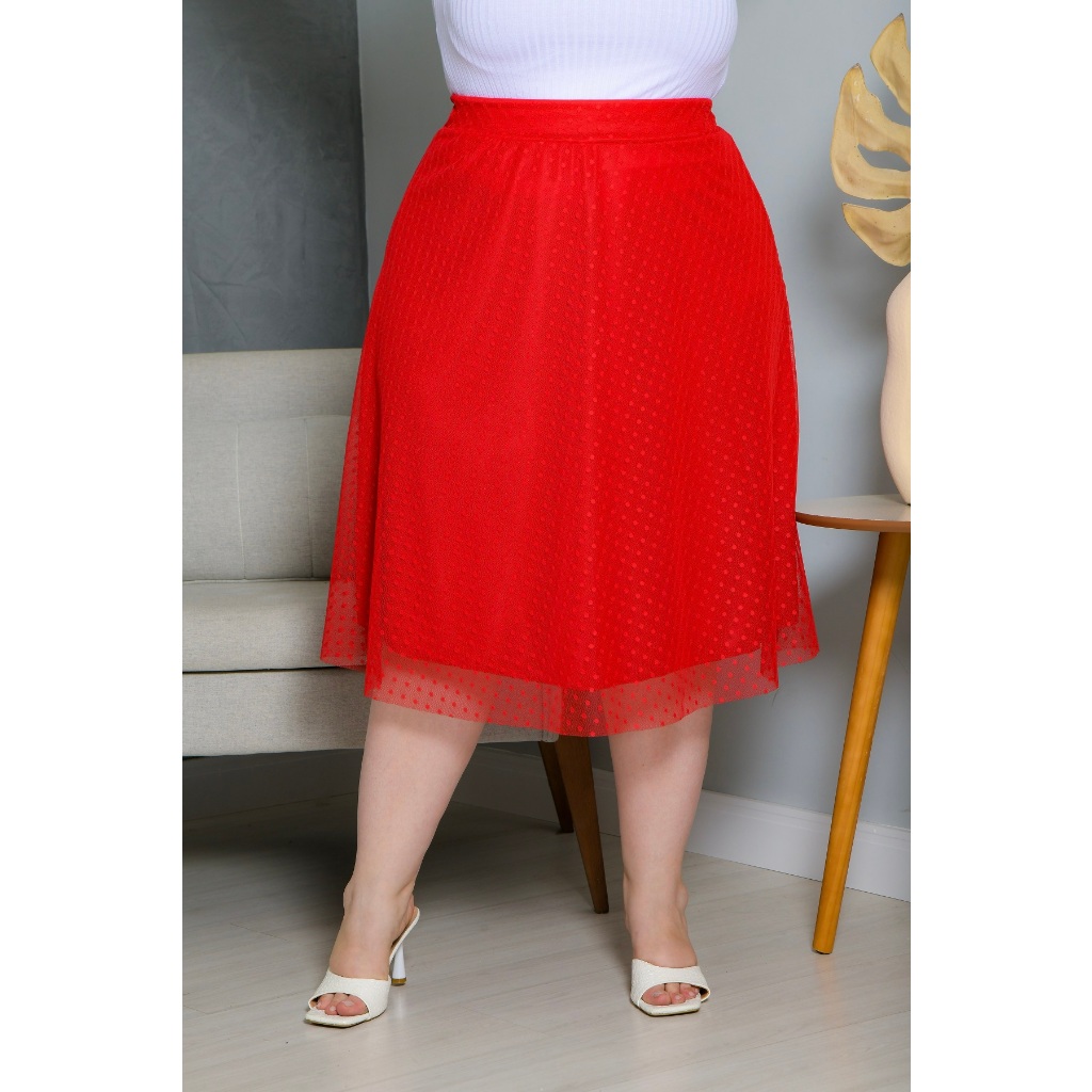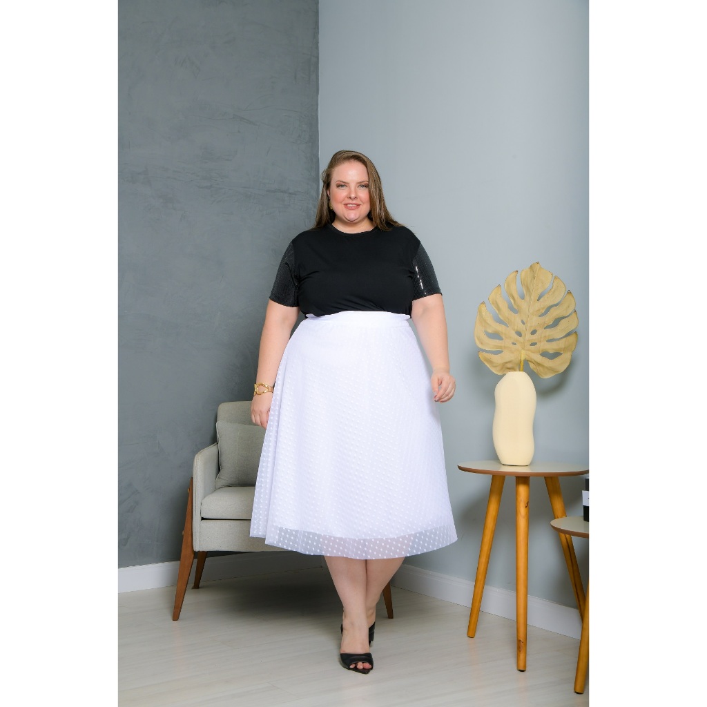 Saia Midi De Tule Poá Com Forro Plus Size Moda Evangélica