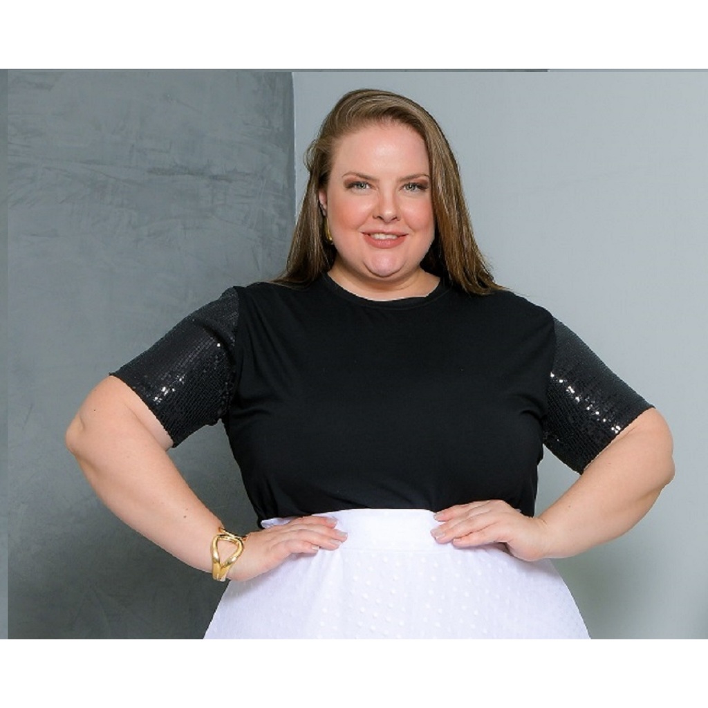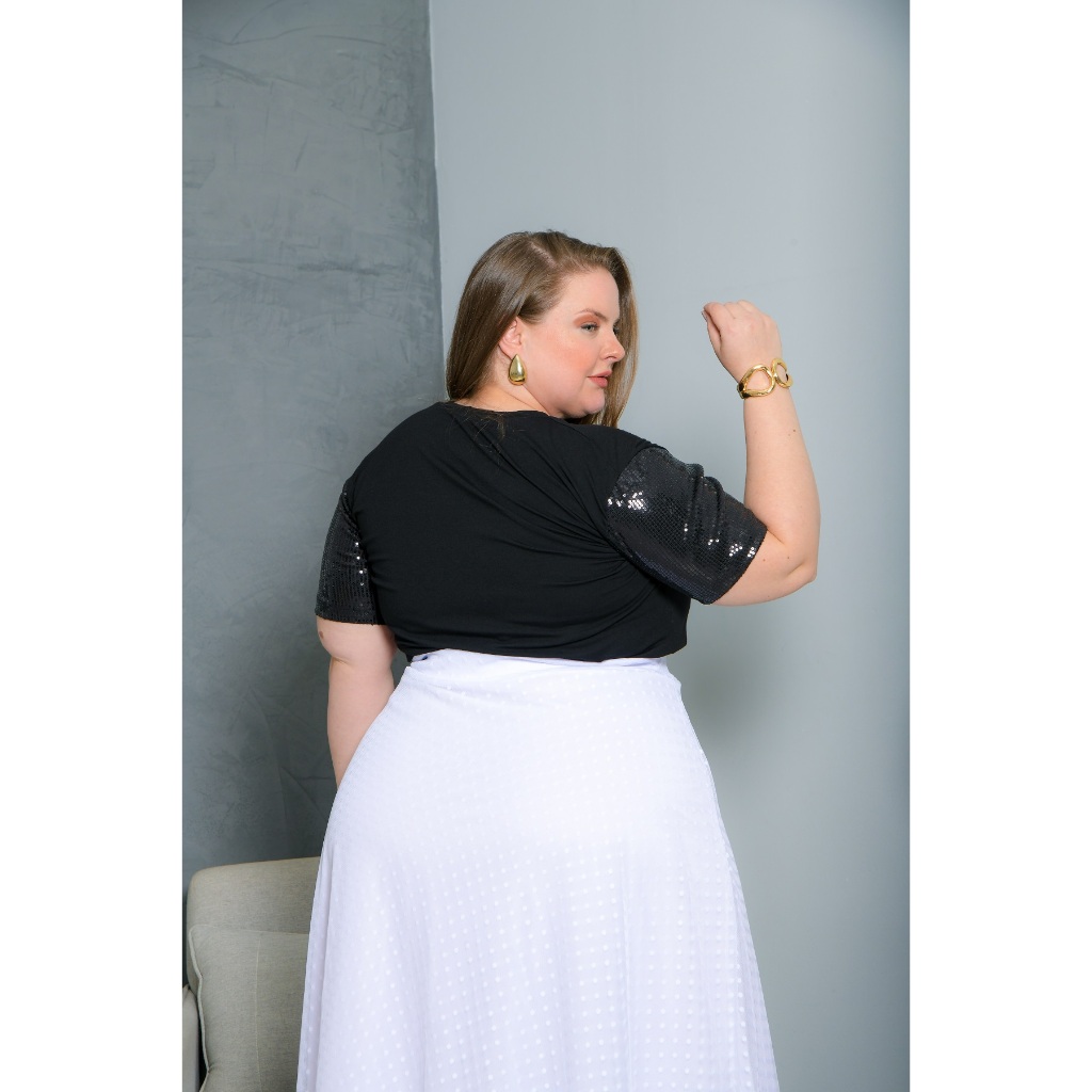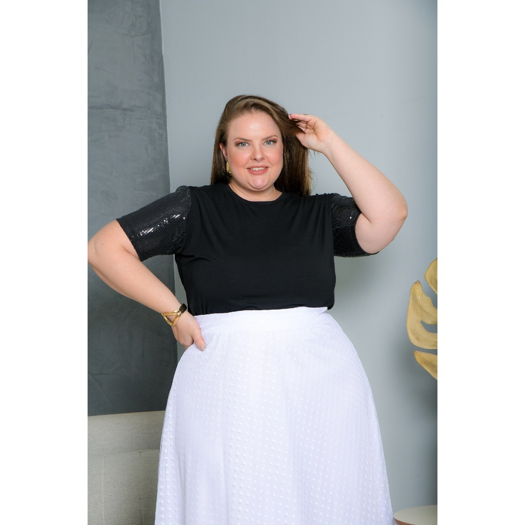 Blusa Feminina T Shirt Com Manga De Paetê Plus Size