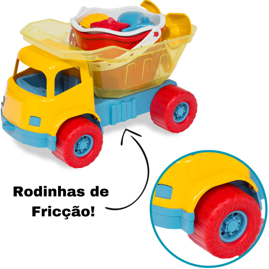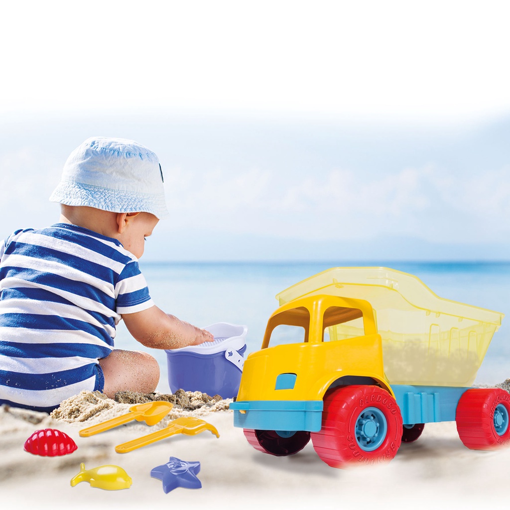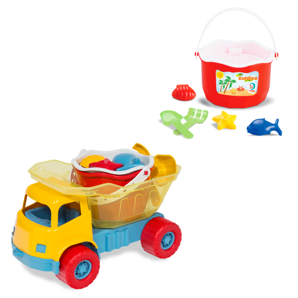 Kit Baldinho De Praia + Caminhão Caçamba Brinquedo Verão divertido 3 forminhas rastelinho e Pazinha