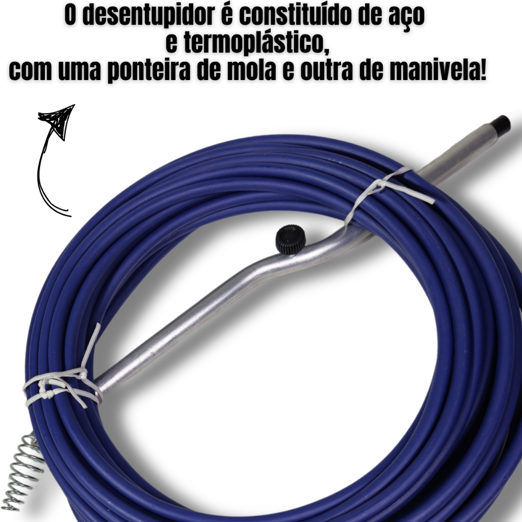 Desentupidor Manual Flexível 10 Metros Ferramenta Para Desentupir Canos Tubos de Esgoto Ralos Pia
