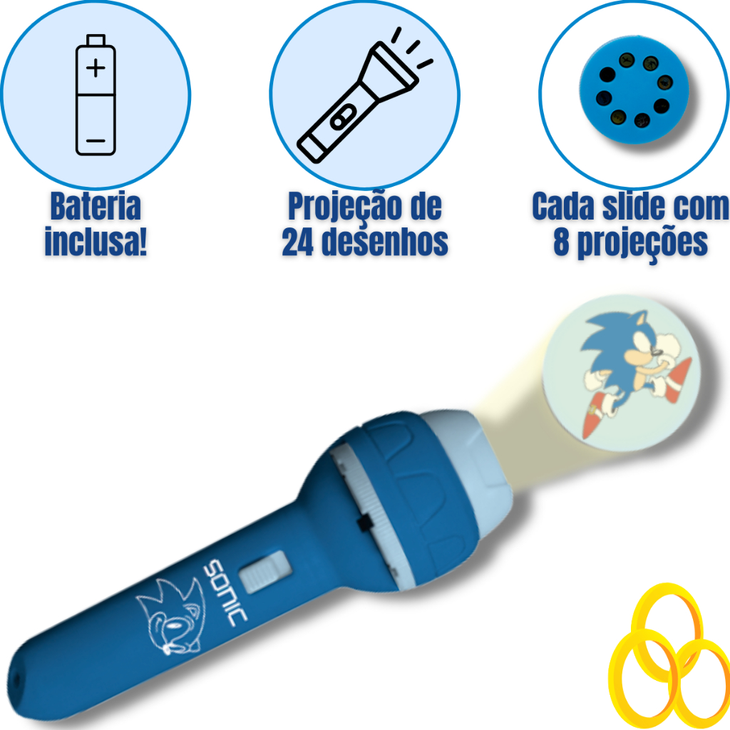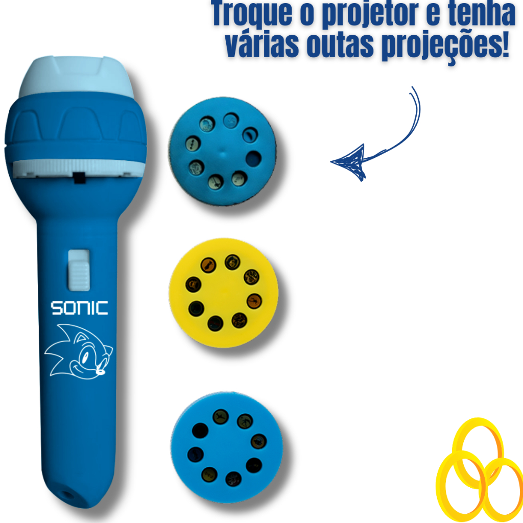 Kit Brinquedo Lanterna Sonic 24 Imagens Projetor Infantil