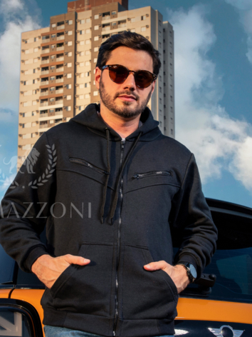 Blusa de Frio Moletom Masculino Ramazzoni Casaco Com Ziper Jaqueta Com Capuz