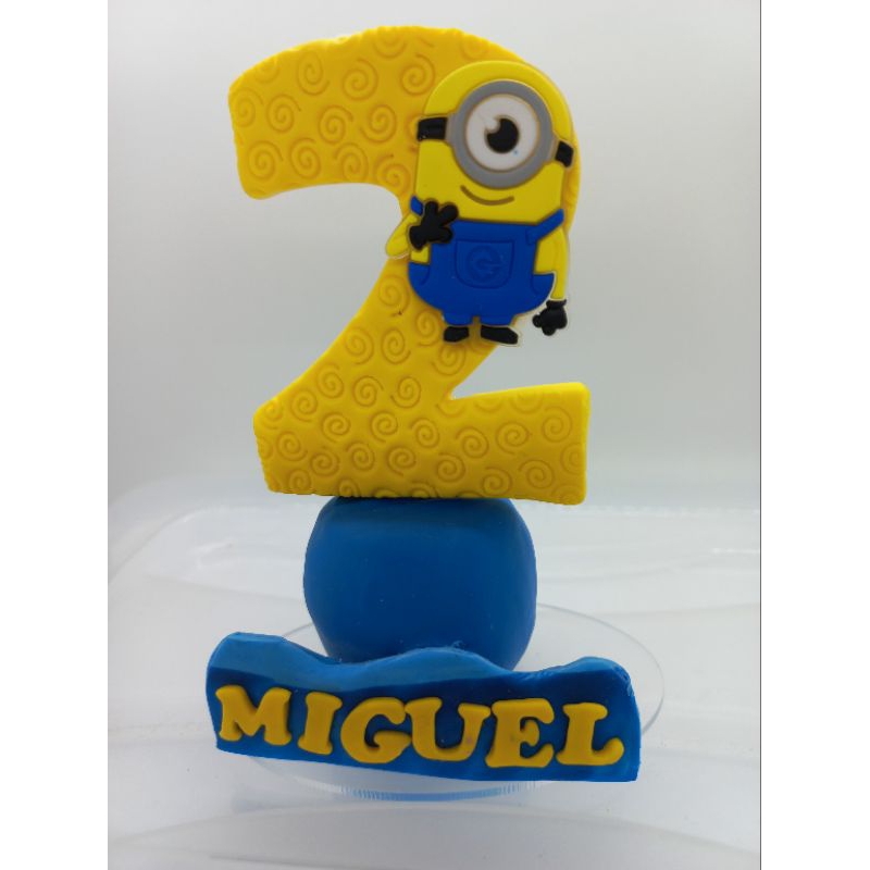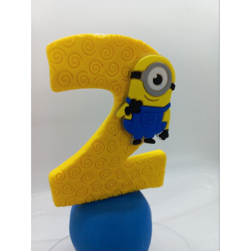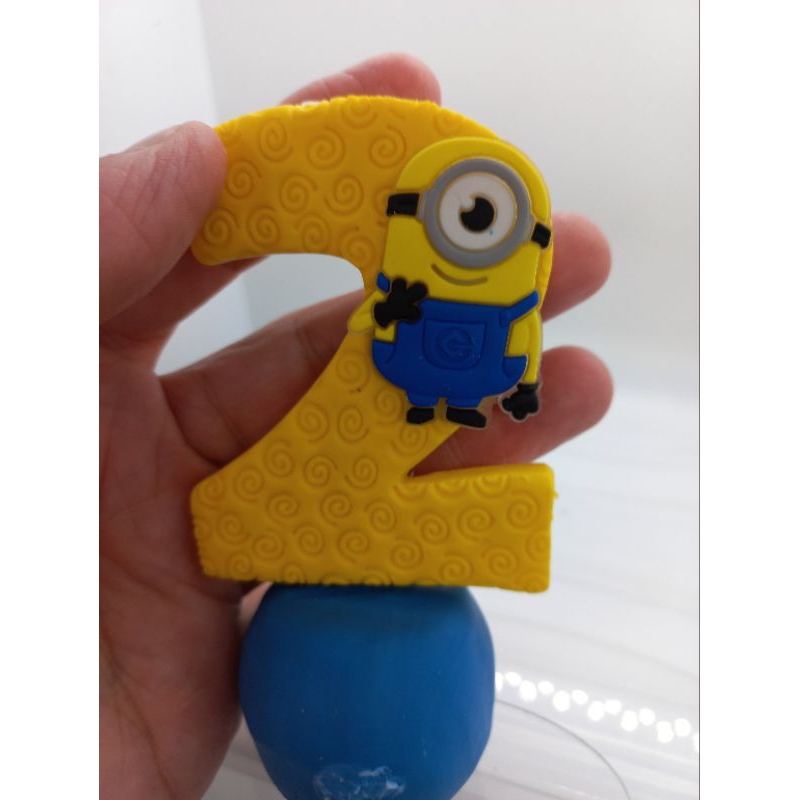 Vela Minions Biscuit Amarela Simples Aniversário Infantil Topo de Bolo Temático + Pavio Mágico