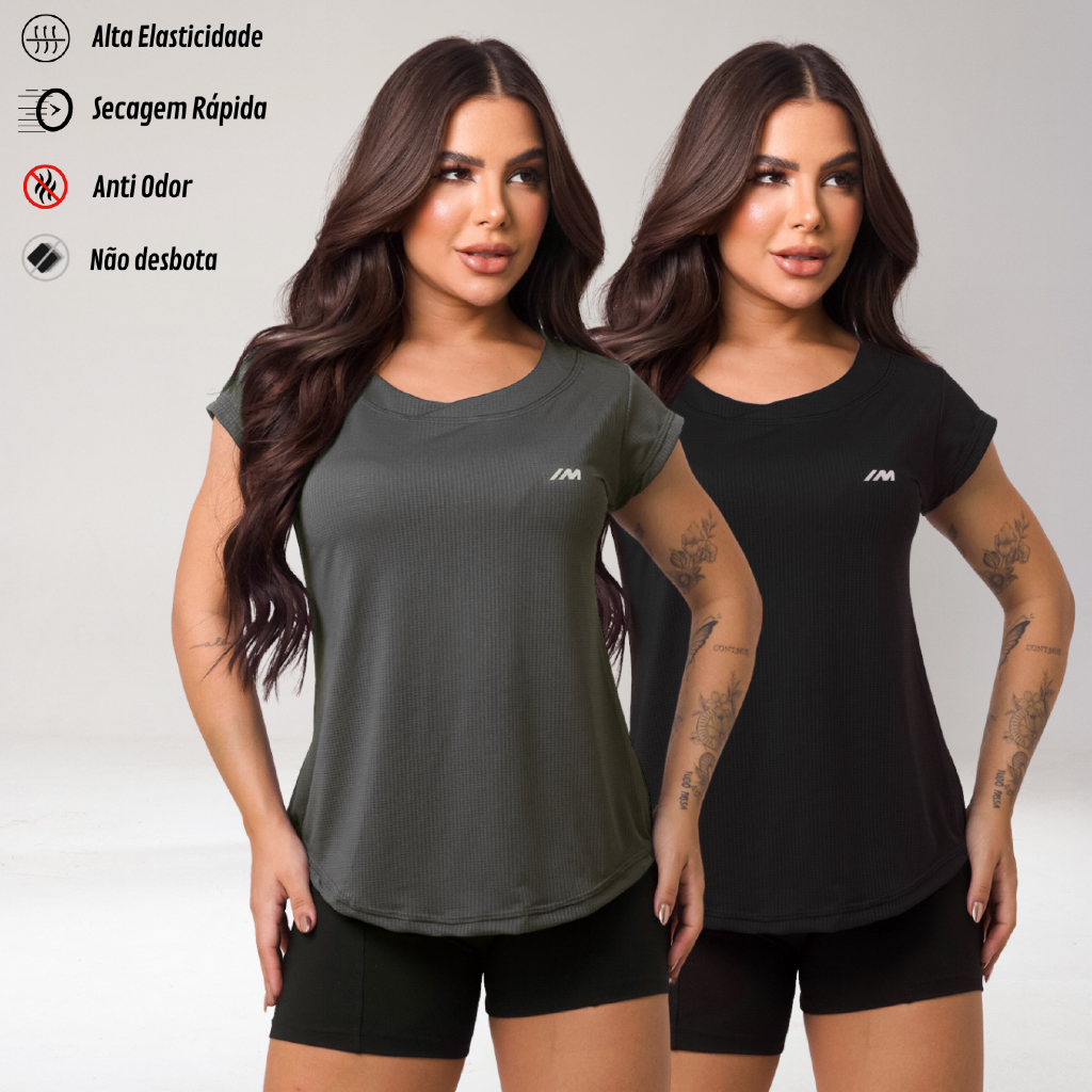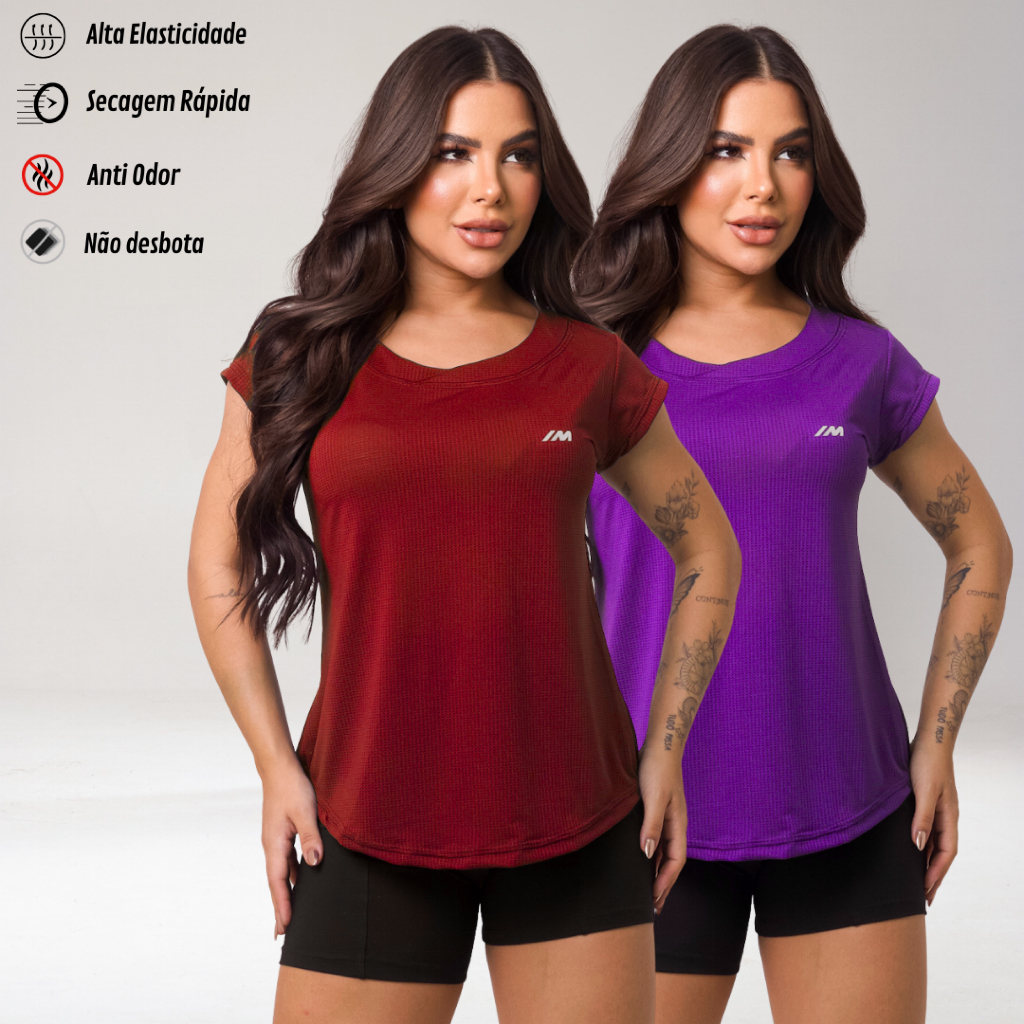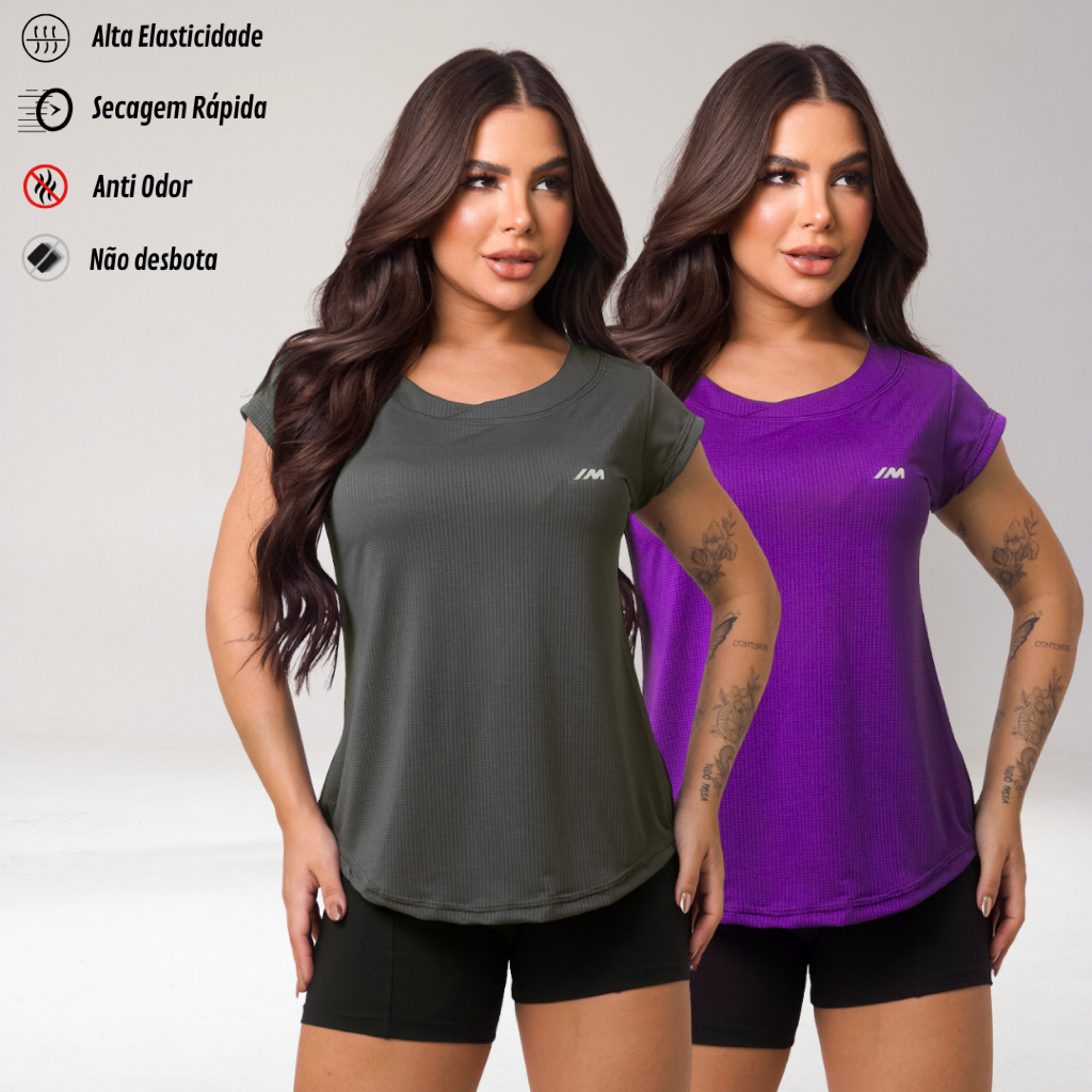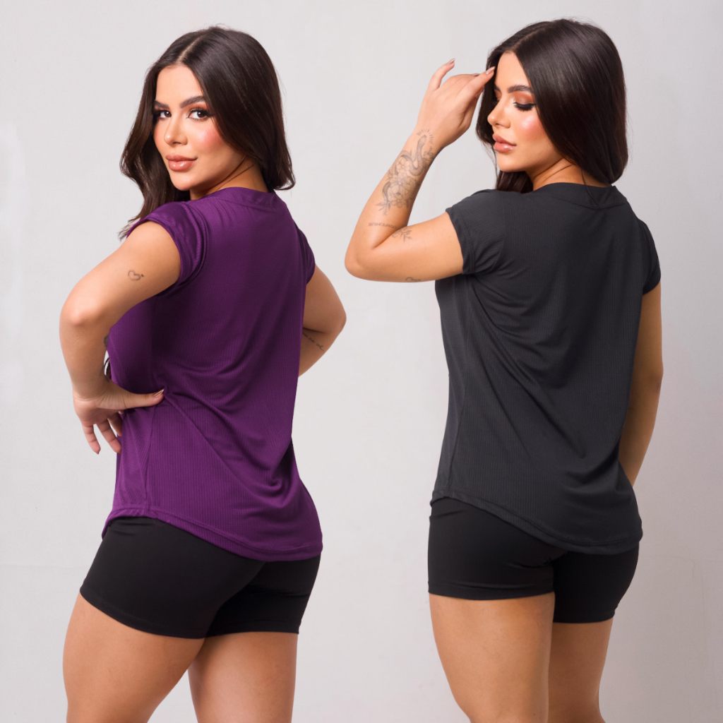 Kit 2 Camiseta Academia Feminina Dry Fit Camisa Blusa Caminhada Musculação Treino Baby Look