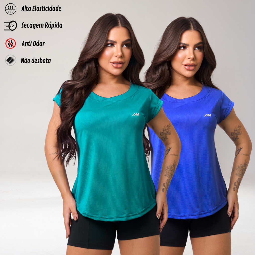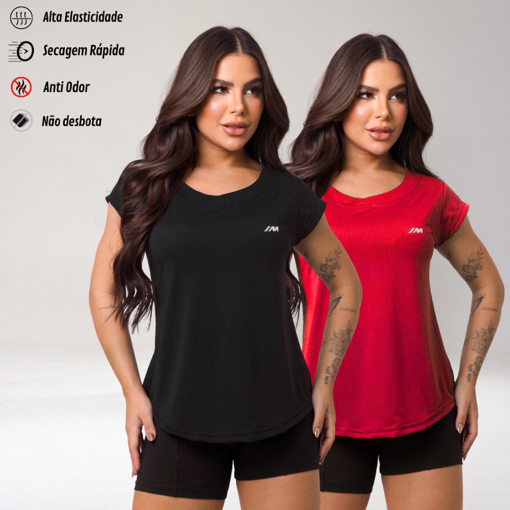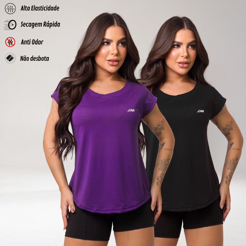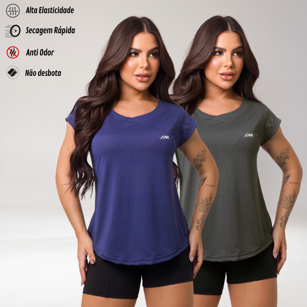 Kit 2 Camiseta Academia Feminina Dry Fit Camisa Blusa Caminhada Musculação Treino Baby Look