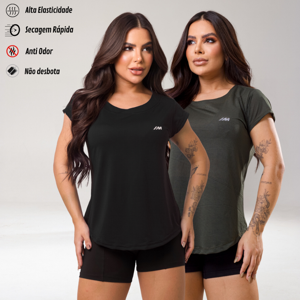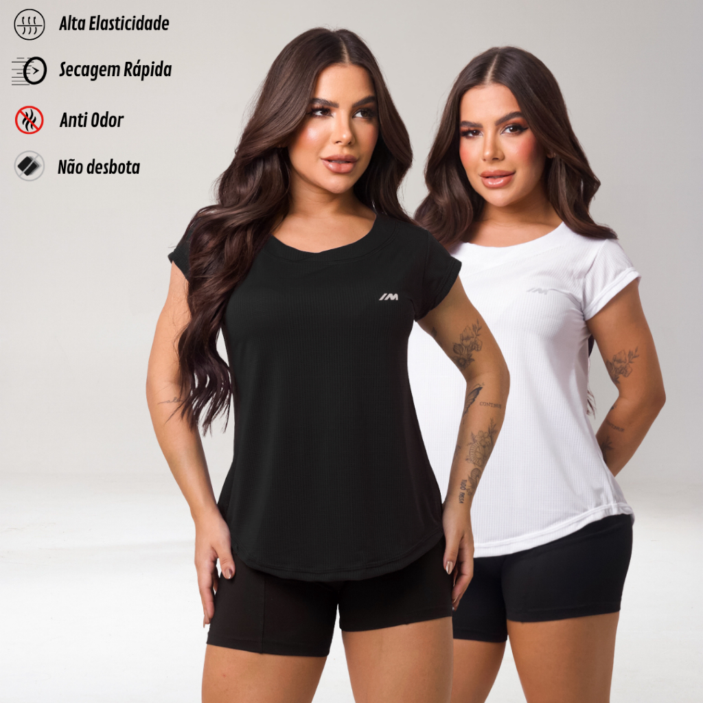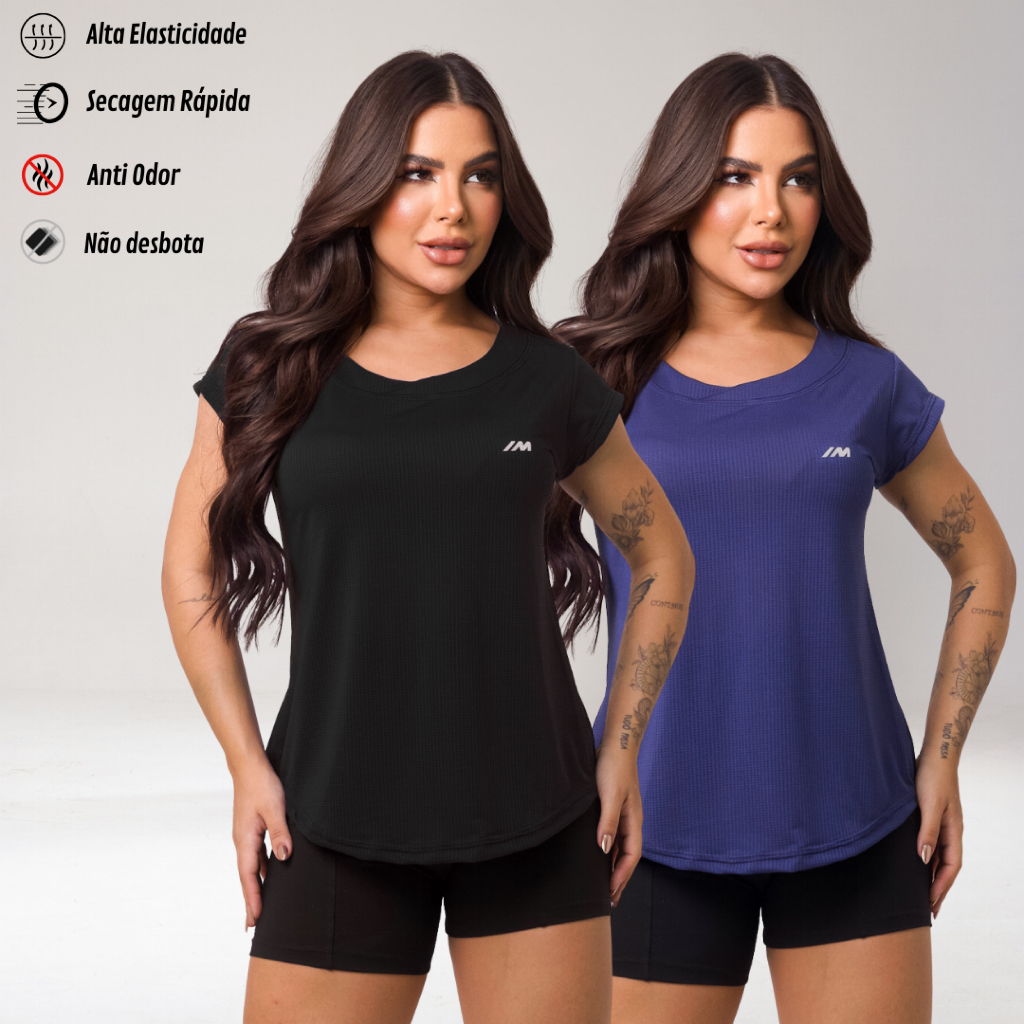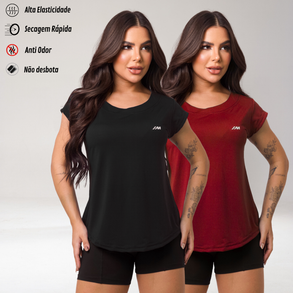 Kit 2 Camiseta Academia Feminina Dry Fit Camisa Blusa Caminhada Musculação Treino Baby Look