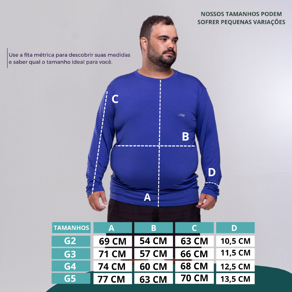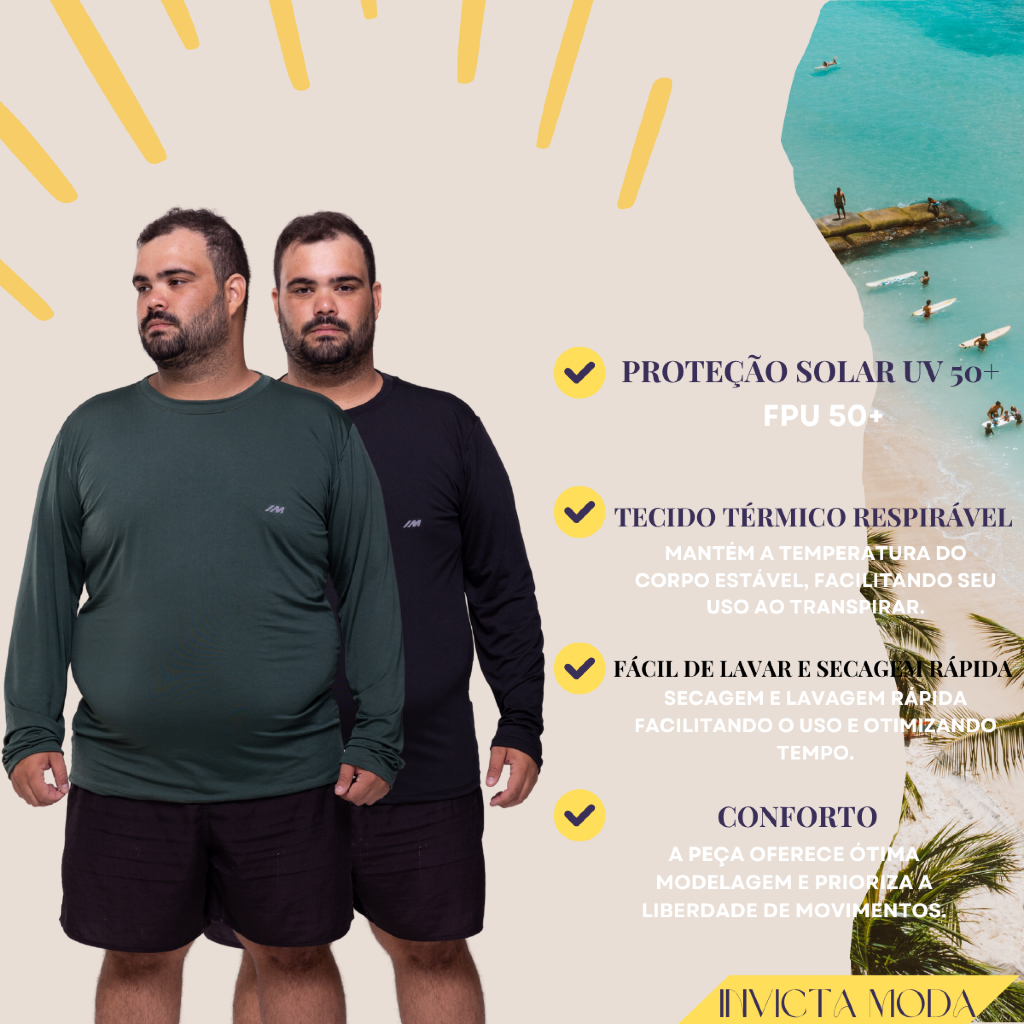 Kit 2 Camisa Proteção Solar Plus Size Unissex Segunda Pele UV 50+ Tamanho G1 G2 G3 G4 G5