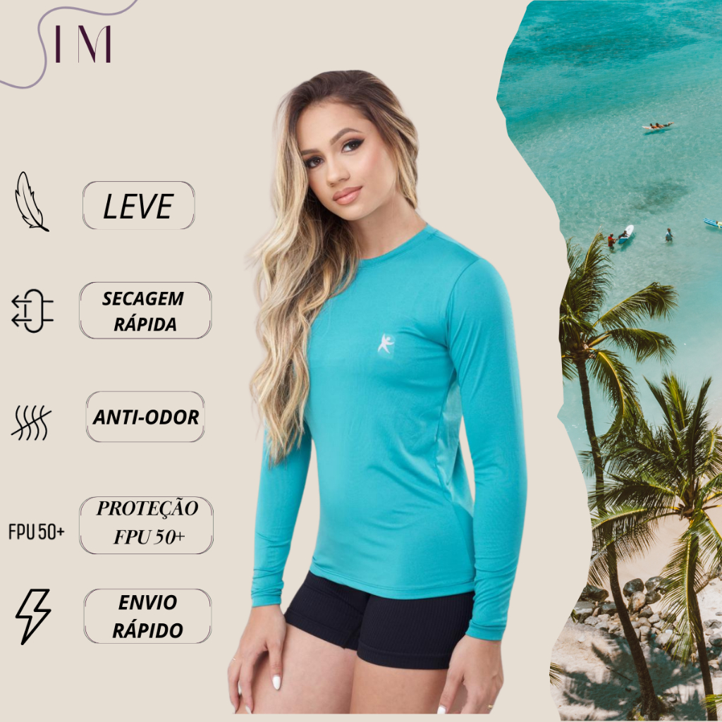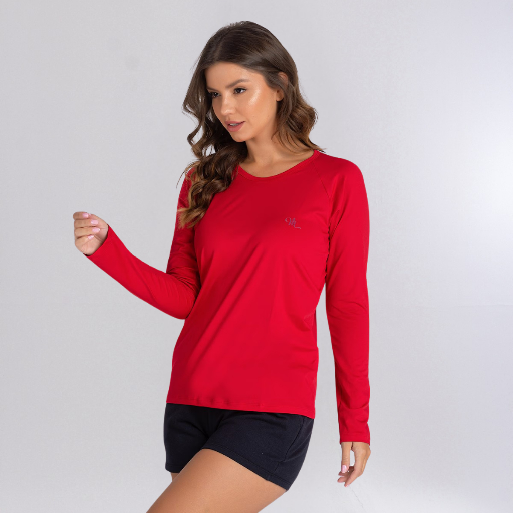 Camisa Térmica Feminina Proteção Uv 50+ Segunda Pele Camiseta Malha Fria Manga Longa