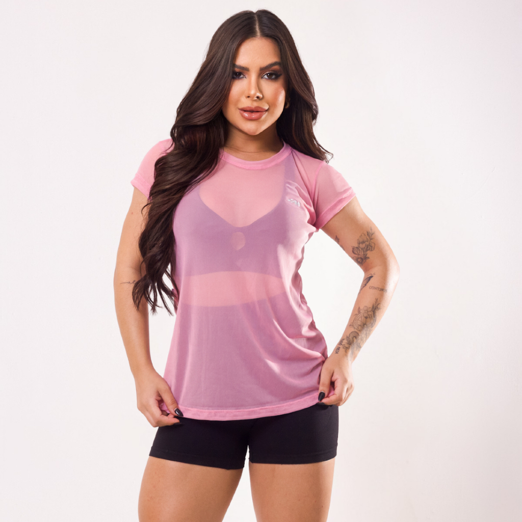 Blusa Feminina De Tule Transparente Academia Fitness Camisão Fitness Treino