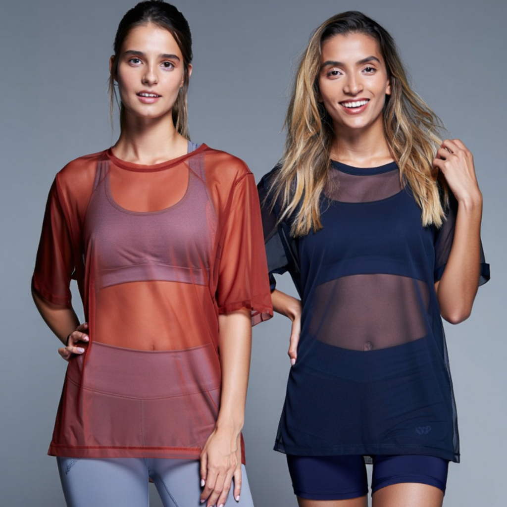 Kit 2 Blusa Tule Feminino Transparente Moderna Respirável Treino Dia a Dia Malhar