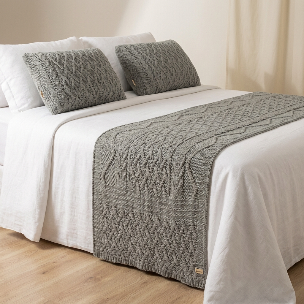 PESEIRA MANTA TRICÔ CAMA QUEEN SOFÁ SALA 230X60cm +2 CAPA DE ALMOFADA 60X40cm SOPHIA S02