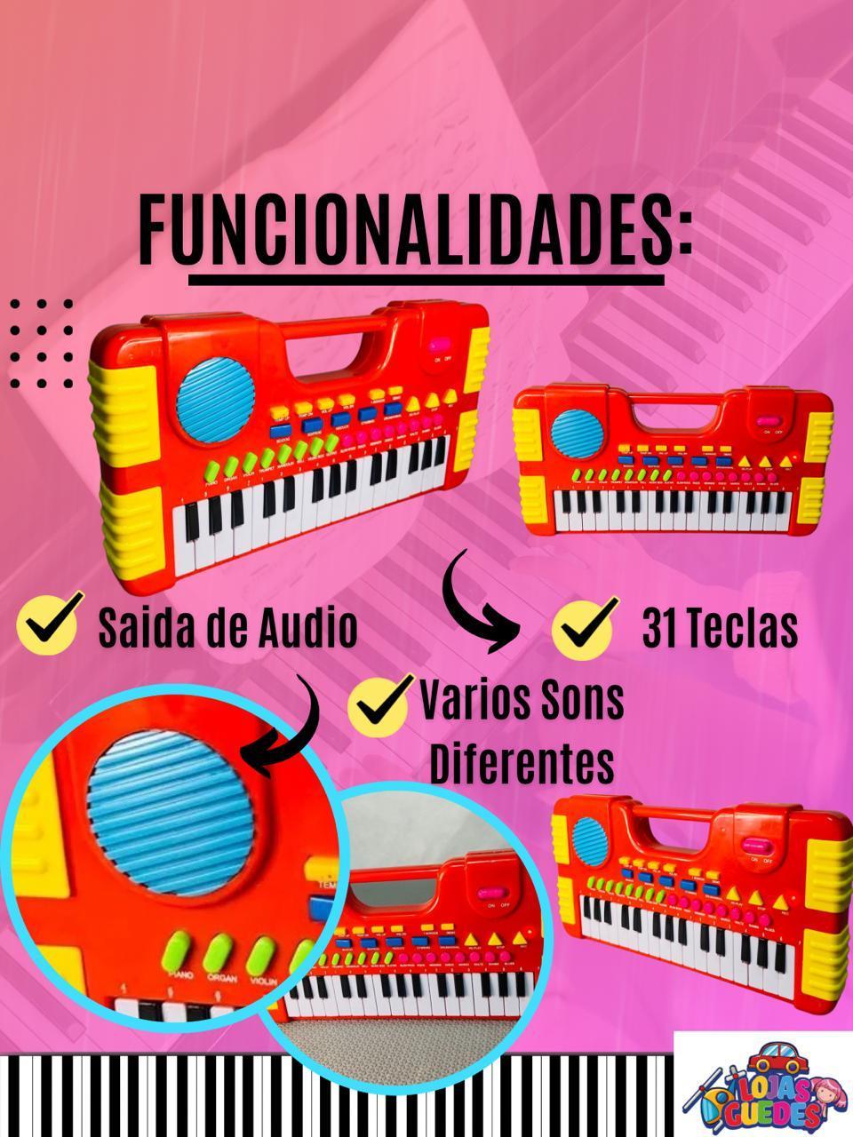 Teclado Piano Musical Com 8 Sons Grava Ritmos Diferentes E 31 Teclas Brinquedo Infantil Guedes