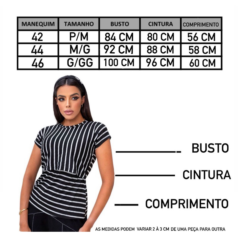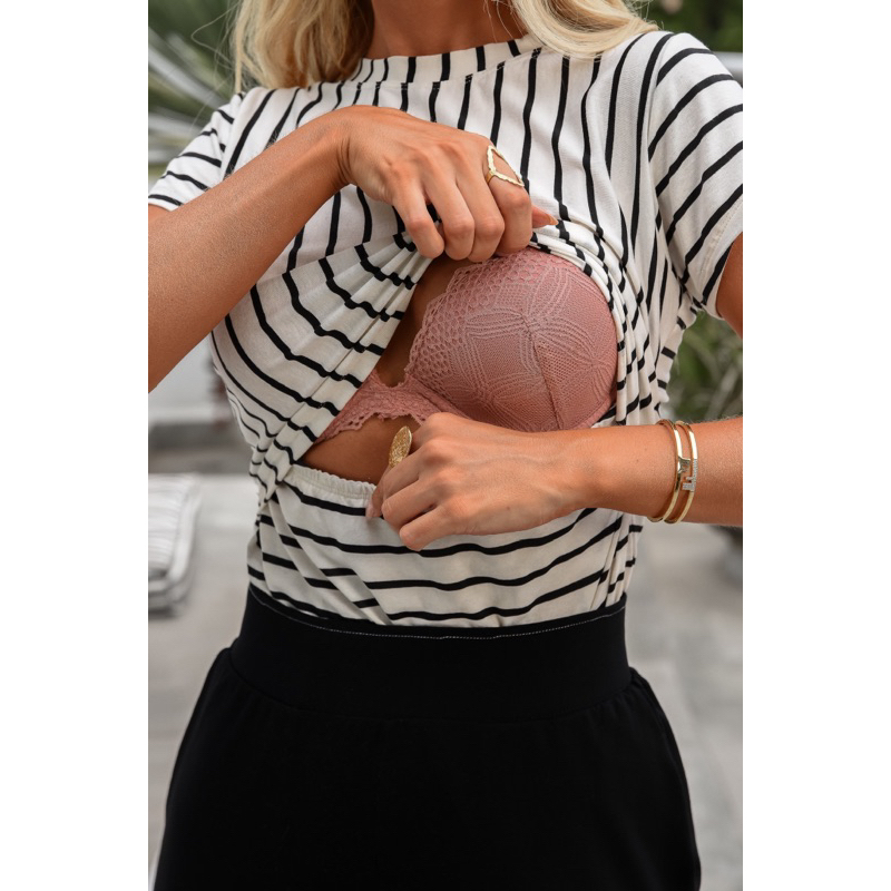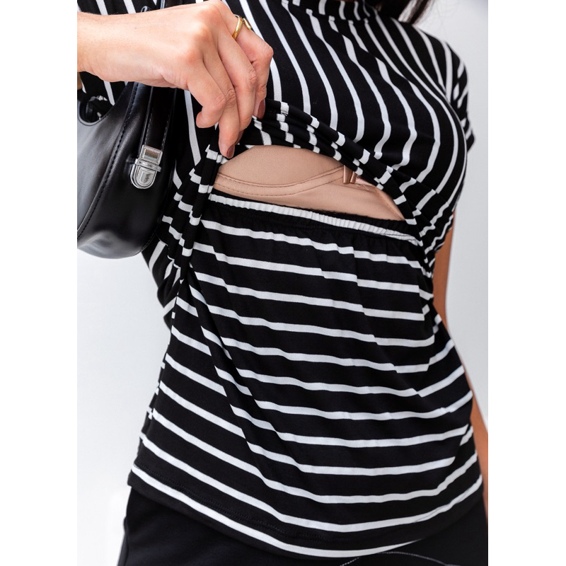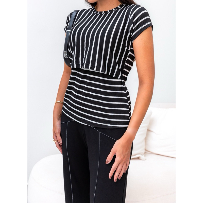 Blusa Amamentação Listrada conforto total tecido que estica