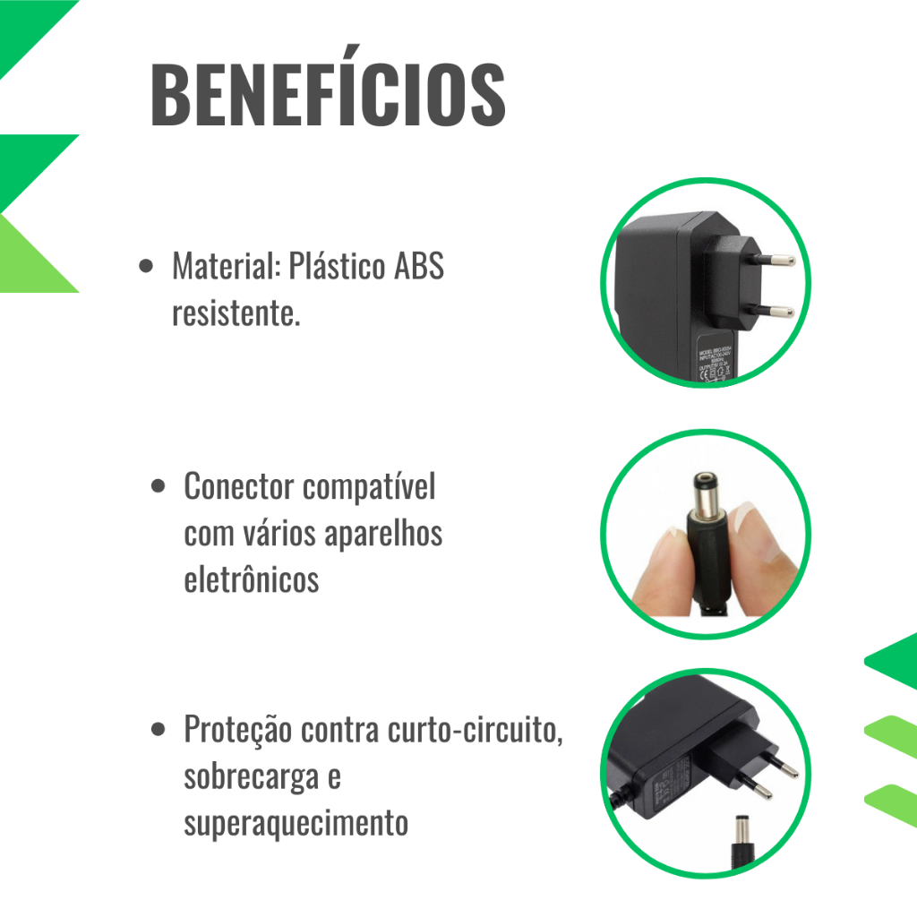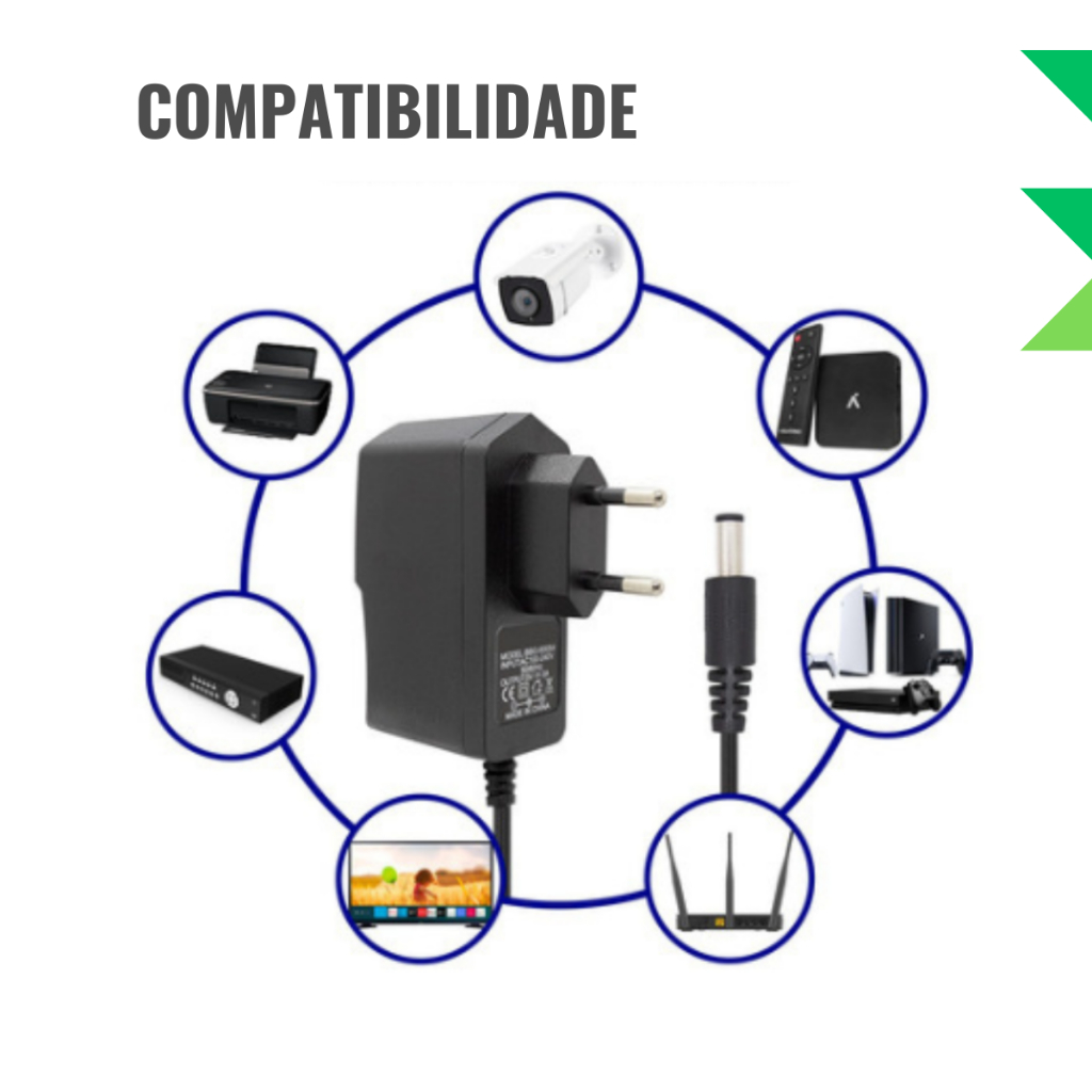 Fonte 5V 2A Plug P4 5.5mm Bivolt | Para TV Box, Câmera, Roteador, Conversor | Estabilizada